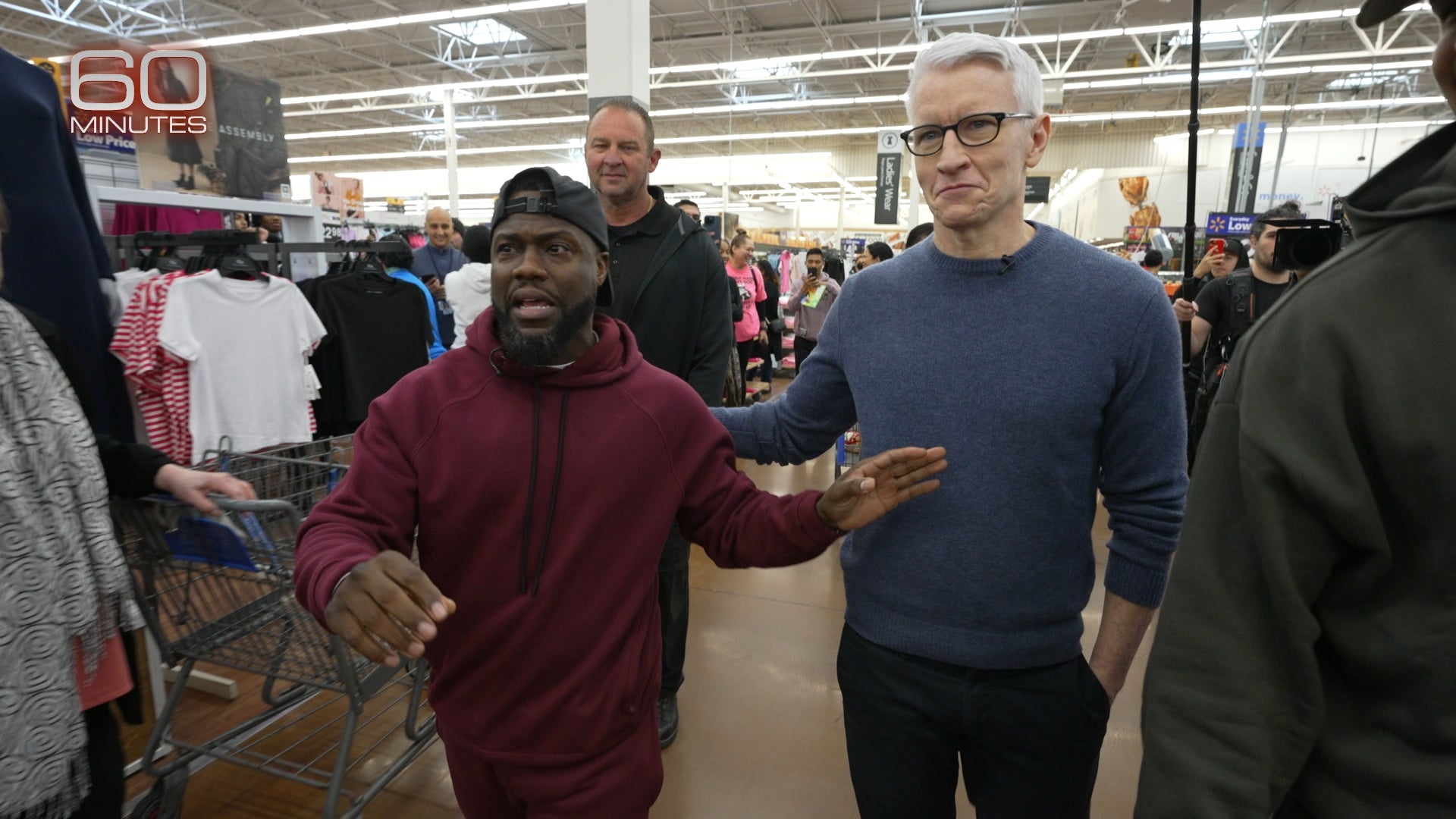 Hart’s segment on the iconic news/interview show finds Cooper going backstage with Hart in Pasadena as he tests out new material sitting down with him at his LA headquarters to discuss the business of being funny. Cooper even joins Hart on a Walmart run.