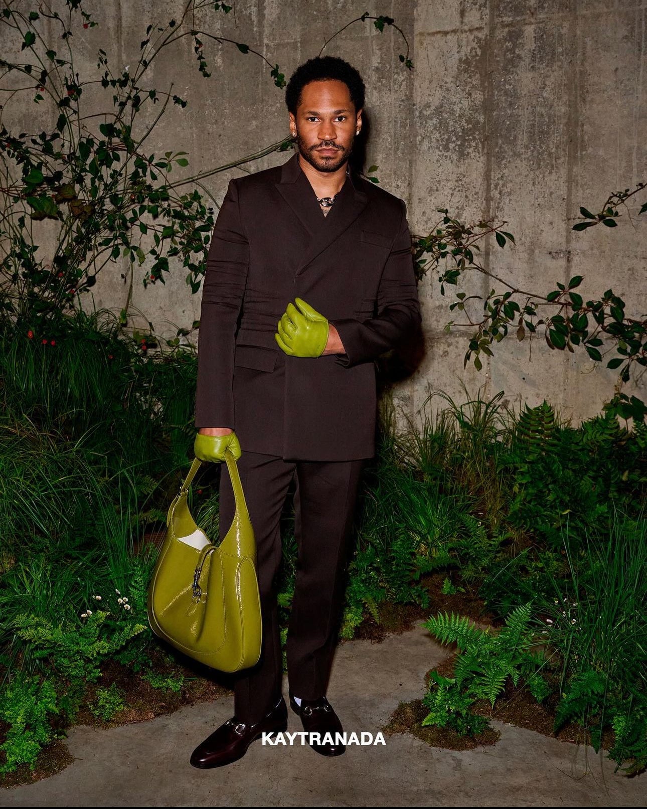 For those tapped into the fashion world, it’s not news that Kaytranada has become a familiar face at Gucci’s runway shows. The duo has built a great relationship with Sabato De Sarno, who took the helm as the Italian fashion house’s creative director in 2023. “For his first show, he had us there. We were really happy to go and see the new life he brought to the brand. It really resonated with Kay and myself,” Von shares. For Kaytranada, Sabato’s minimalistic approach won him over instantly. They’ve been at three of the shows this year already. At the brand’s Cruise 2025 fashion show in London, he wore a standout runway look, donning a sleek brown-hued suit complete with a lime-green Jackie bag and matching leather gloves.