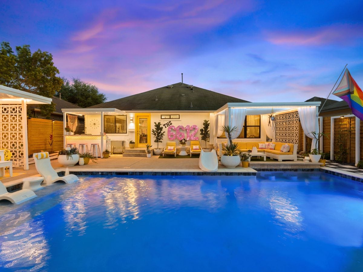 Standout Listing: Check out The 6612, a highly rated backyard space near Austin, Texas that’s perfect for an intimate poolside brunch or a kickback with a few friends. The hosts allow up to 20 guests and parking for up to five cars. You’ll have access to a private restroom inside the home and the pool area includes a waterfall, water slide, and large shallow area for young swimmers. Other perks include a hot tub and a shaded cabana, and for an extra fee, you can reserve a few coolers to keep your drinks cold.