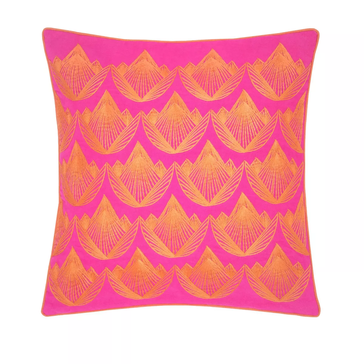 Lotus Embroidered Decorative Pillow Orange/Magenta