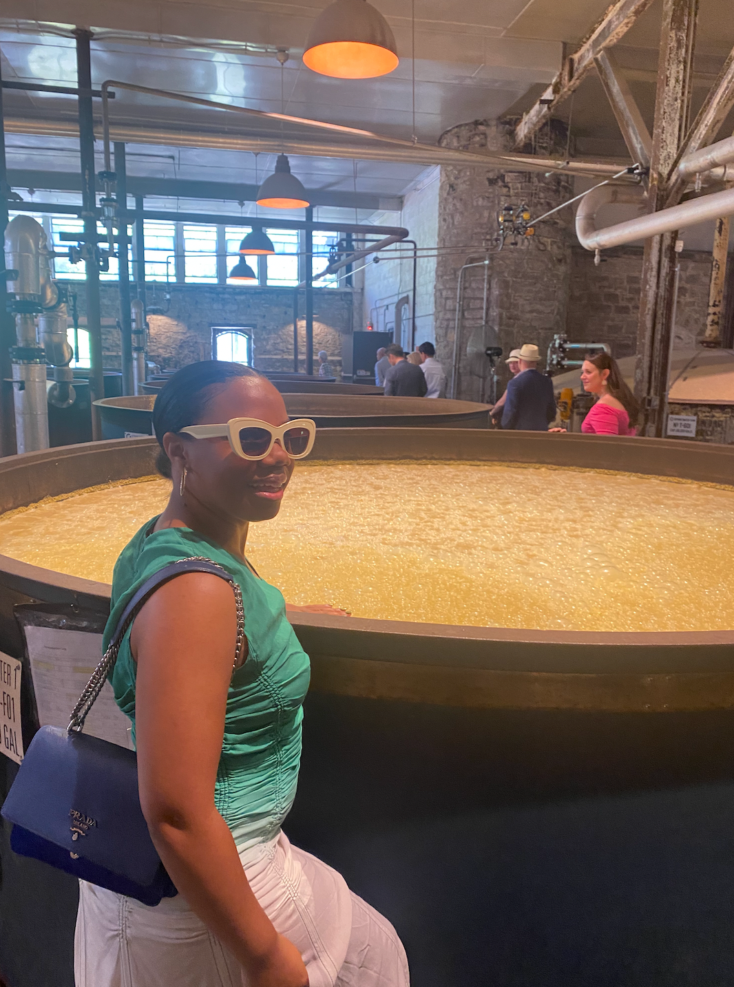 After collecting my barrings and recovering from the four-hour plane ride, I slipped on my metallic green cowboy boots and linen dress to prepare for our private tour at Castle & Key Distillery in Frankfort, Kentucky. Once we all piled onto the tour bus, we were greeted with mimosas, wine, and bourbon to make the 30-minute bus ride to the distillery easier. I marveled at the sprawling open land, thoroughbred horses, and plush greenery, excited for the upcoming tour.