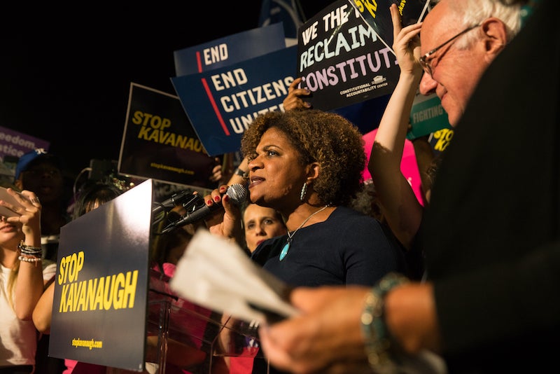 If Kavanaugh were to interpret the constitution as it stands, she said, “then we can expect that [he] will remain complicit in this nation’s continued attack on the civil rights of the girls and women who hang in the balance.”