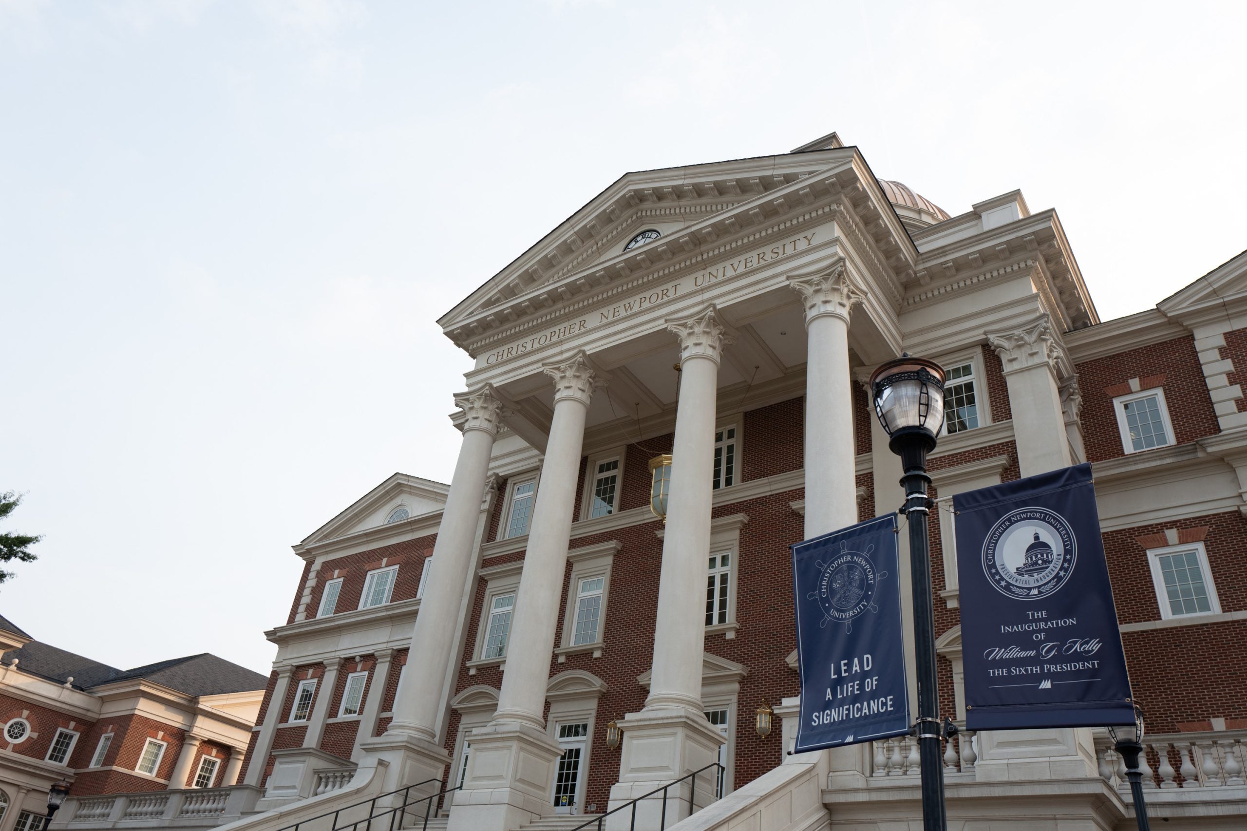 A statue of jaunty, bearded Christopher Newport, wearing a cavalier hat and leaning on a sword, looms at the entrance to his namesake university. Behind the mariner who transported settlers to the Virginia Colony in the early 17th century lies a 75-acre campus of brick Colonial and Georgian-style buildings named after public officials, university administrators and wealthy donors.