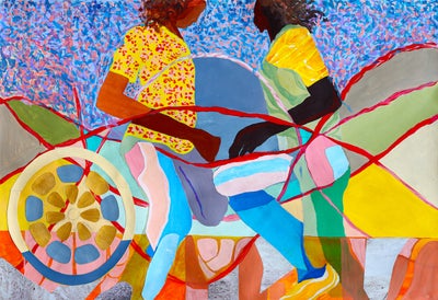 In her recent project, Urbania, currently on view at The Museum of Contemporary African Diasporan Arts in Brooklyn, NY, Becoat draws on her own experiences and brings viewers into some of the social aspects of dwelling in public housing projects. She explores the games, colors and ways residents choose to interact, highlighting the frequently forgotten aspects of Black lives in New York City, in the 16 original pieces of her new body of work.