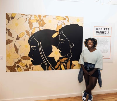 Desiree Vaniecia: For me, it’s just easier to get my ideas out that way. It works well with my writing to be able to write down the ideas that I have in my head or the feelings I’m going through and then conceptualize a painting with it. That’s why I chose to paint and to do large forms of painting, at that. I create pieces that resemble me and I know that that sounds very vain, but I have to see myself in my work or somebody I know. I draw inspiration from my family members, my little cousins, and my sons and that translates so people are able to see themselves but also what the Black culture is for me and how I see the culture.