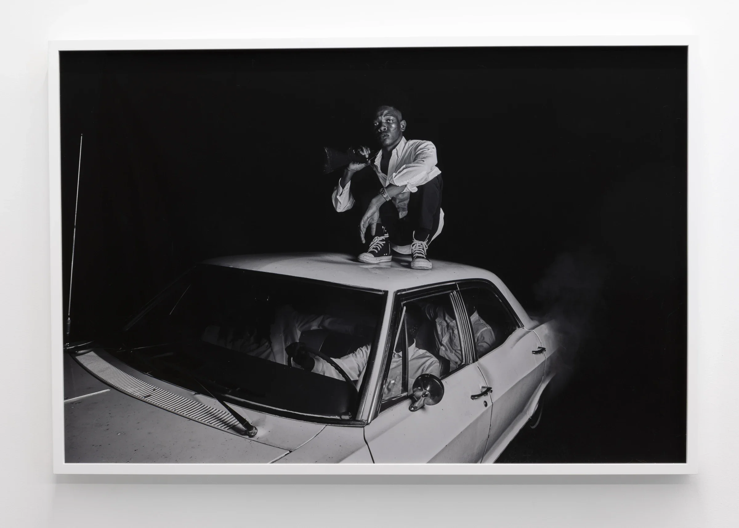 Eric Hart Jr., known for his rich photographic language, brings a striking image that speaks to the complexities of masculinity, race, and queerness. Moore says, “He’s very vocal and outwardly wanting to talk about Black men queer issues—and I don’t feel like I see that a lot.”