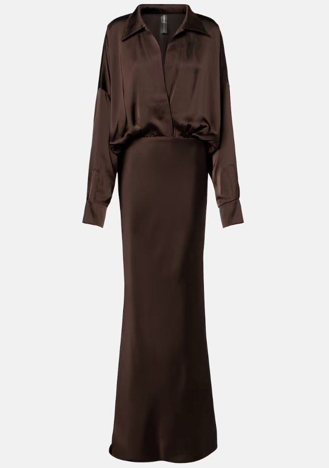 One of her most unforgettable fashion moments came at the 1995 Academy Awards, where she wore a collared brown gown with a cinched waist and a voluminous skirt, finished with tulle cascading along the train. She completed the look with a striking diamond drop-link necklace and matching drop earrings.