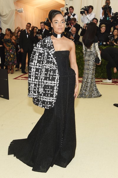 Tessa Thompson looks heavenly as she steps out to the Heavenly Bodies: Fashion & The Catholic Imagination Met Gala in NYC.