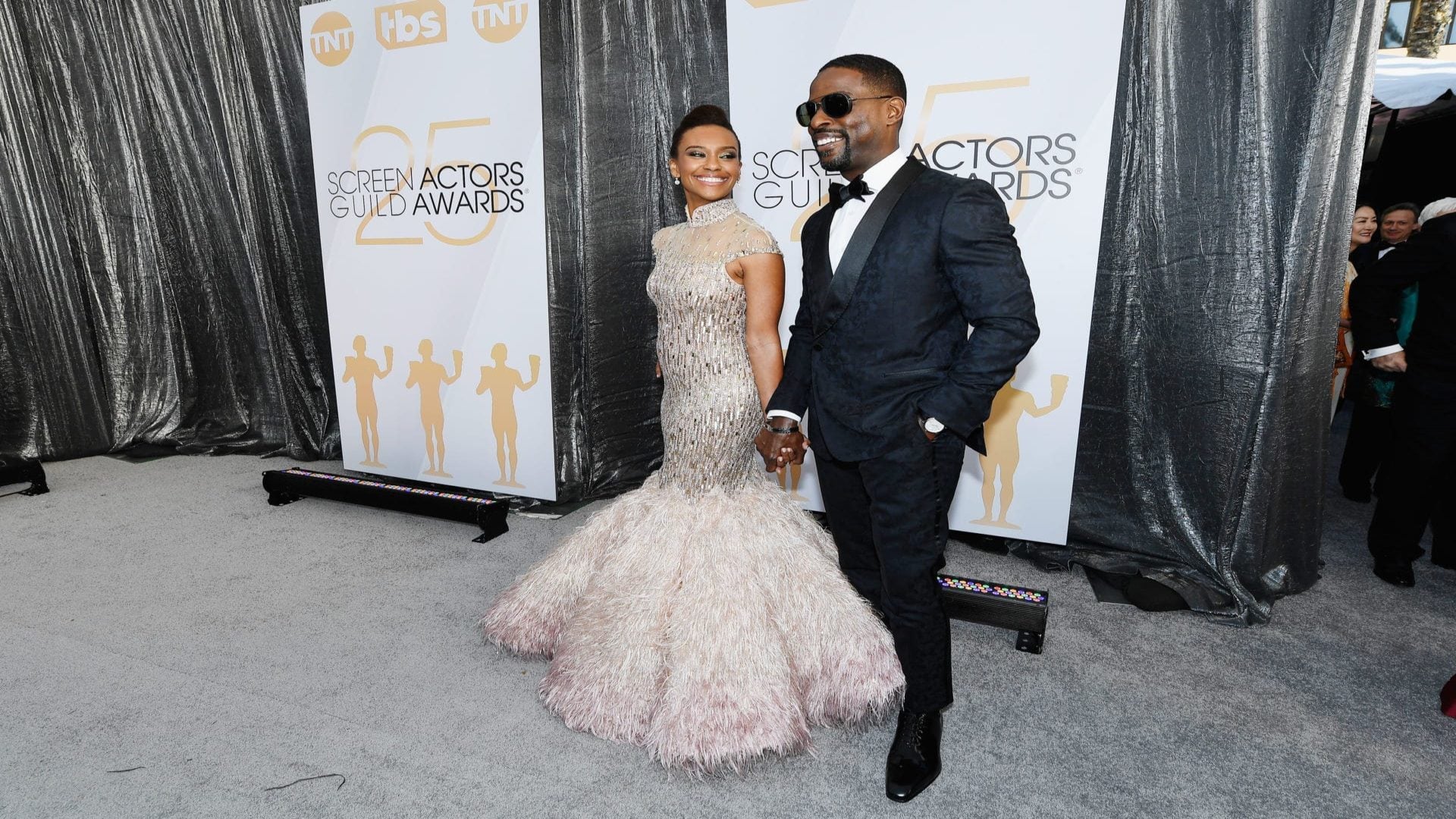Sterling K. Brown, the most nominated actor at Sunday night’s Screen Actors Guild Awards, walked the red carpet with his wife Ryan Michelle Bathe, and of course the This Is Us actor couldn’t help but talk about his marriage to Bathe and what makes it work.