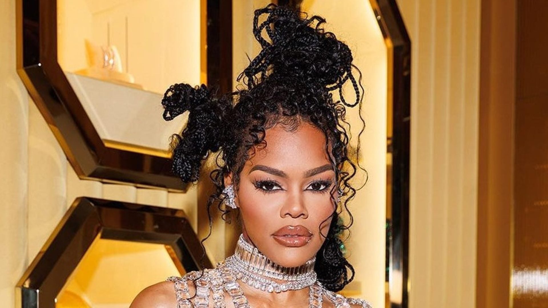 Braided updos were definitely popular this week, too. Teyana Taylor had hers in three asymmetrical buns and Janet Jackson tied up two. But experimental hairstyles– like Meg’s tiered look– contrasted long, buss down wigs– like Model Abény Nhial. And speaking of experimenting, Tracee Ellis Ross also showed up in a light pink bob for fun– so cute! This vibe continued on thanks to Doechii’s brown star-stenciled hair and Baby Tate’s playful duck bill nails. All leading us to ask: when’s the last time you tried something new?
