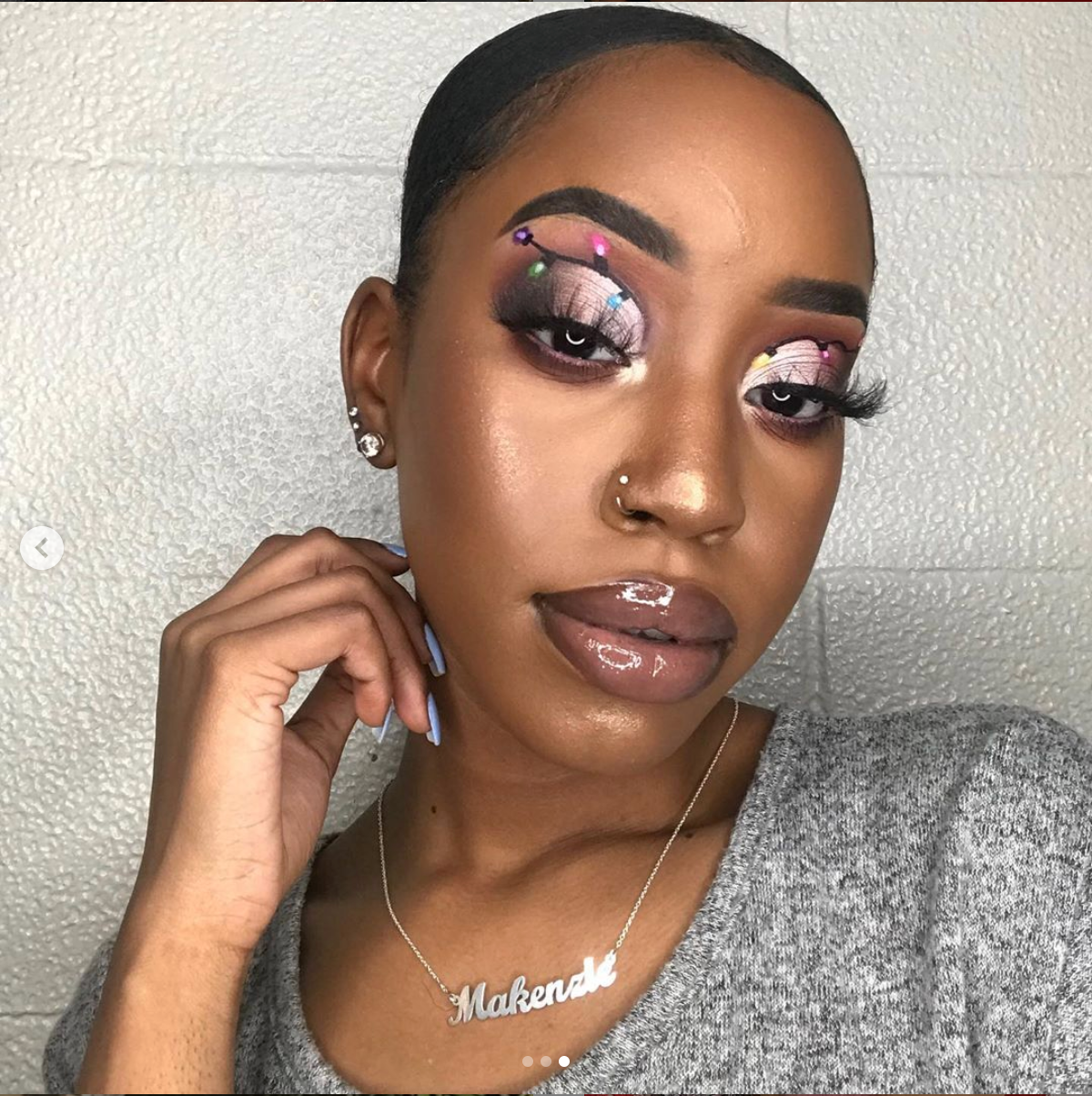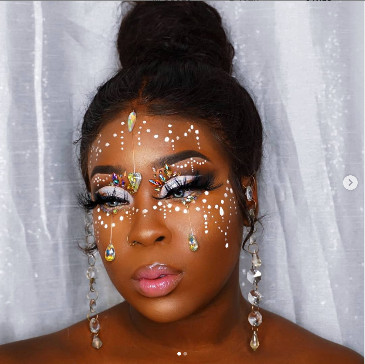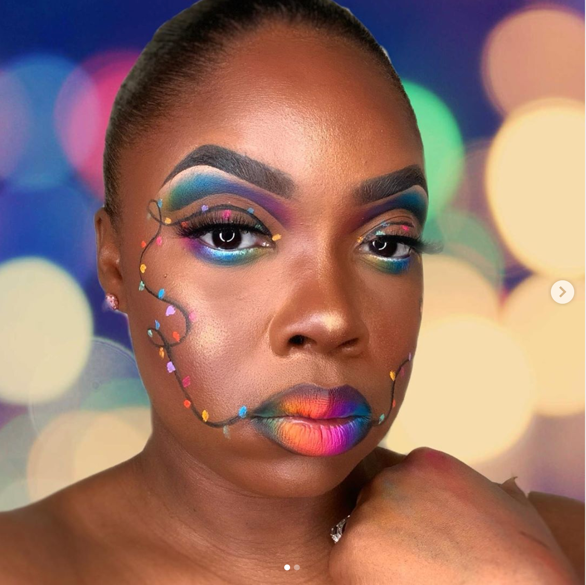 “But this beat is chef’s kiss…,” Skye captioned the post. And we have to admit, she’s right. Everything from Skye’s glowing skin to her decorated eyelids with winged candy cane eyeliner and crystal gems is perfection.
