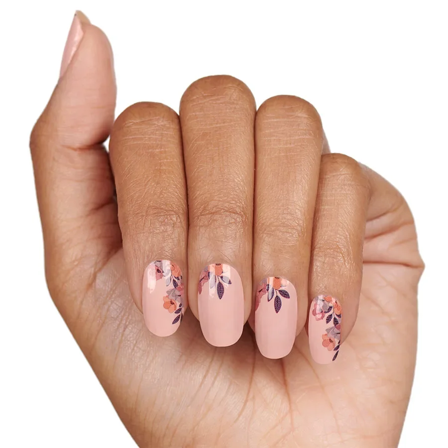 Floral Obligation, a design of somber blooms on delicate neutral beige, will add a romantic touch to your nails.