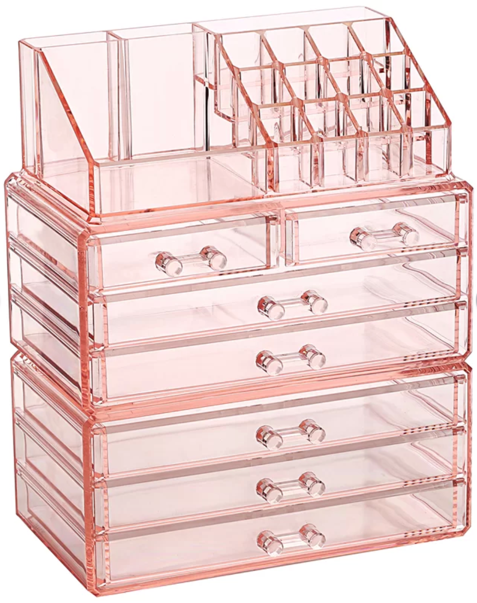 No more sifting through your purse or makeup bag for your favorite lip gloss and liner, these see-thru organizers will keep your essentials in perfect view.