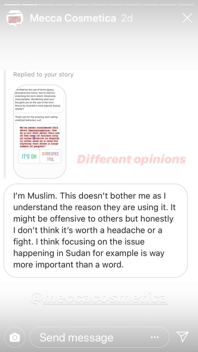 What do you think about the MECCA umbrella (Mecca Cosmetica and Mecca Maxima) using the name for their brand?