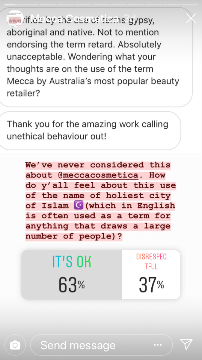 If you’re not already following Estée Laundry on Instagram, you need to start immediately. It’s an anonymous collective of people calling out copycats, posers, cultural bandwagonism, and injustices in the beauty industry, as well as applauding those who wield their beauty power thoughtfully—like the beauty version of Diet Prada. Over the weekend, their fervor was aimed at Australian beauty mega-giant Mecca Cosmetica, for their use of the name of the holy city in their moniker.