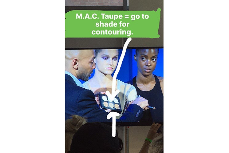 What’s a makeup master class without at least one vibrant color product? I’m still thinking about the Tom Ford lavender shadow Sir John used on this model. Purple looks divine on brown skin, so I’ve already found the matching eyeshadow quad ($82, nordstrom.com) for those who want to recreate this look.