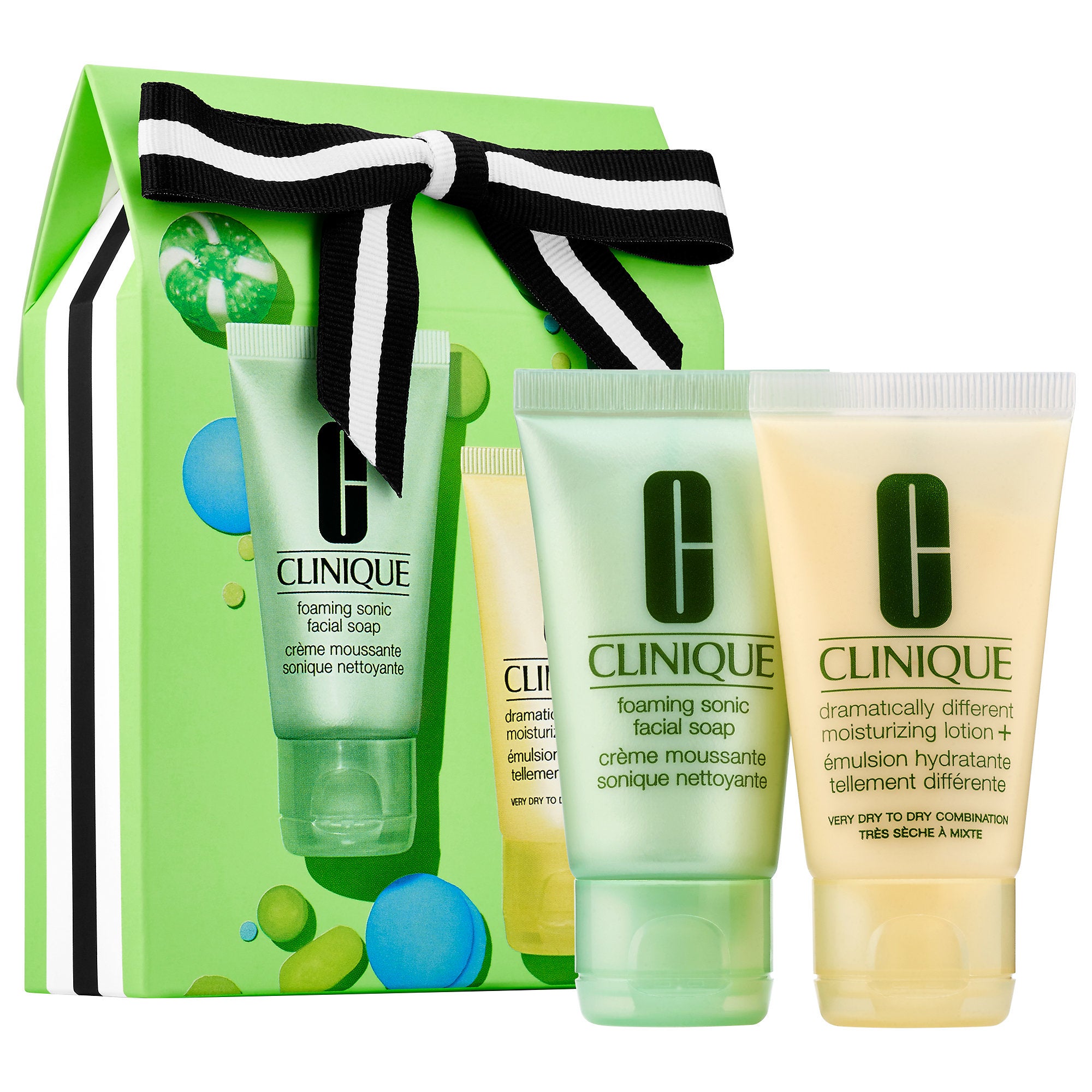 Gift the key to healthier looking skin! This Sparkle and Glow Set includes CLINIQUE’s Foaming Sonic Facial Soap and cult favorite Dramatically Different Moisturizing lotion, both of which deliver a glow on the go. $10, sephora.com