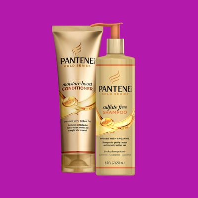 It still warms our hearts—and slays our manes—knowing that this collection was formulated by a team of Black women scientists. The sulfate-, paraben- and silicone-free products work for both relaxed and natural tresses. Basically, they should be a staple in any haircare regimen. Pantene Gold Series Sulfate Free Shampoo and Moisture Boost Conditioner ($8 and $6, target.com).
