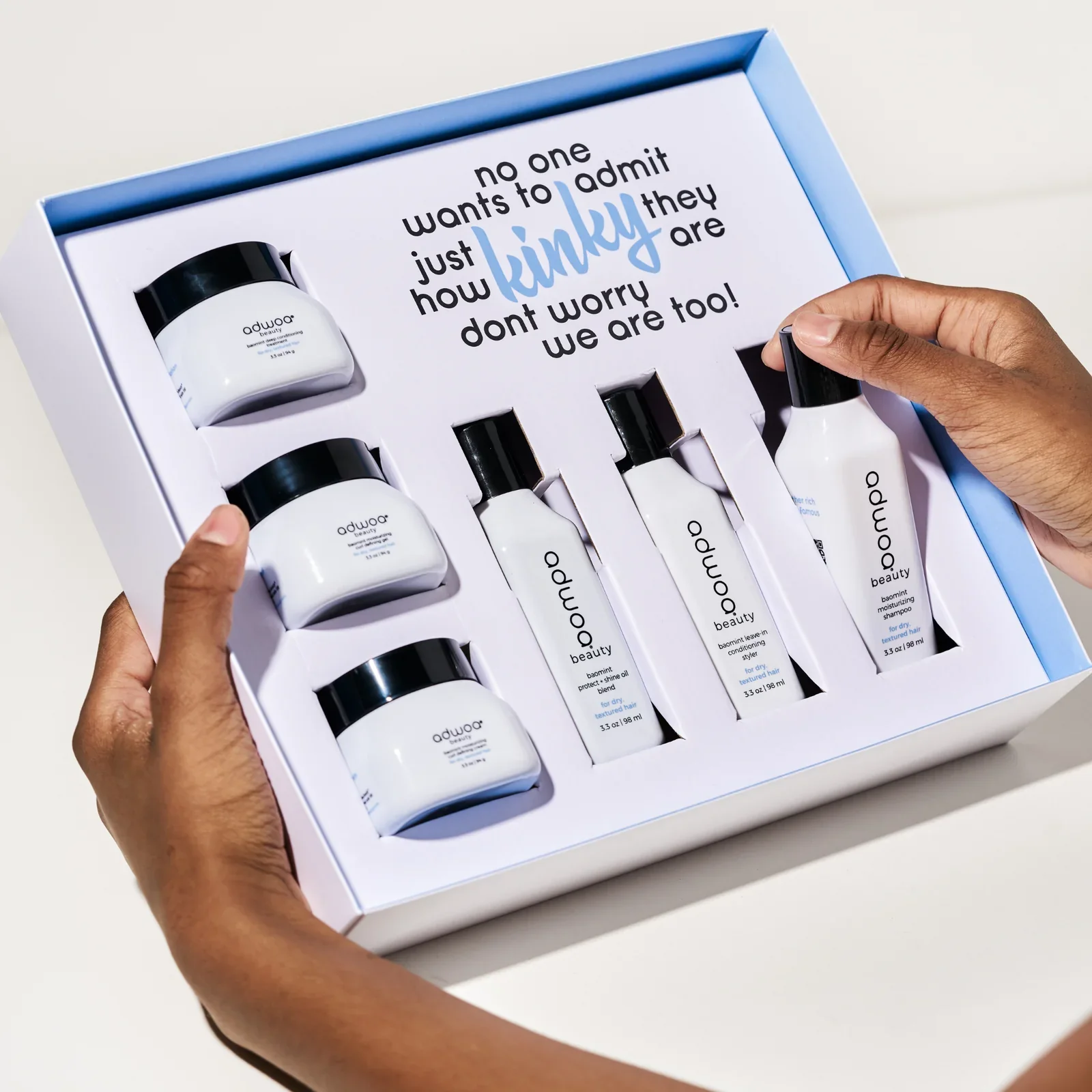 Surprise your friend with this baomint-infused kit: complete with a shampoo, deep conditioning treatment, leave-in conditioner, oil, curl defining cream, and gel. Available at Adwoa Beauty