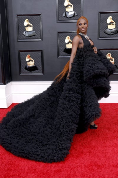 Let’s make one thing clear: Black girls with colored hair always reign supreme. Last night, at the 2022 Grammy Awards, things were no different. While many were in awe of the vibrant shades of the designer silhouettes that dominated the carpet — from Billy Porter in hot pink Valentino, to H.E.R. in a Dreamsicle-hued Peter Dundas jumpsuit — our eyes were on the textured tresses and the dynamic hairstyles that accompanied them. Saweetie, who for the first time ever wore her pixie cut on a red carpet, one she died a silver-ish glow, to Jamaican dancehall queen Spice, who wore a vibrant, tousled teal bun, vivid strands were the true victors of last night’s happenings. But don’t just take our word for it — ahead, a selection of queens whose hair colors will leave you with some new hair inspo, and a reason to hit up your hairstylist ASAP.