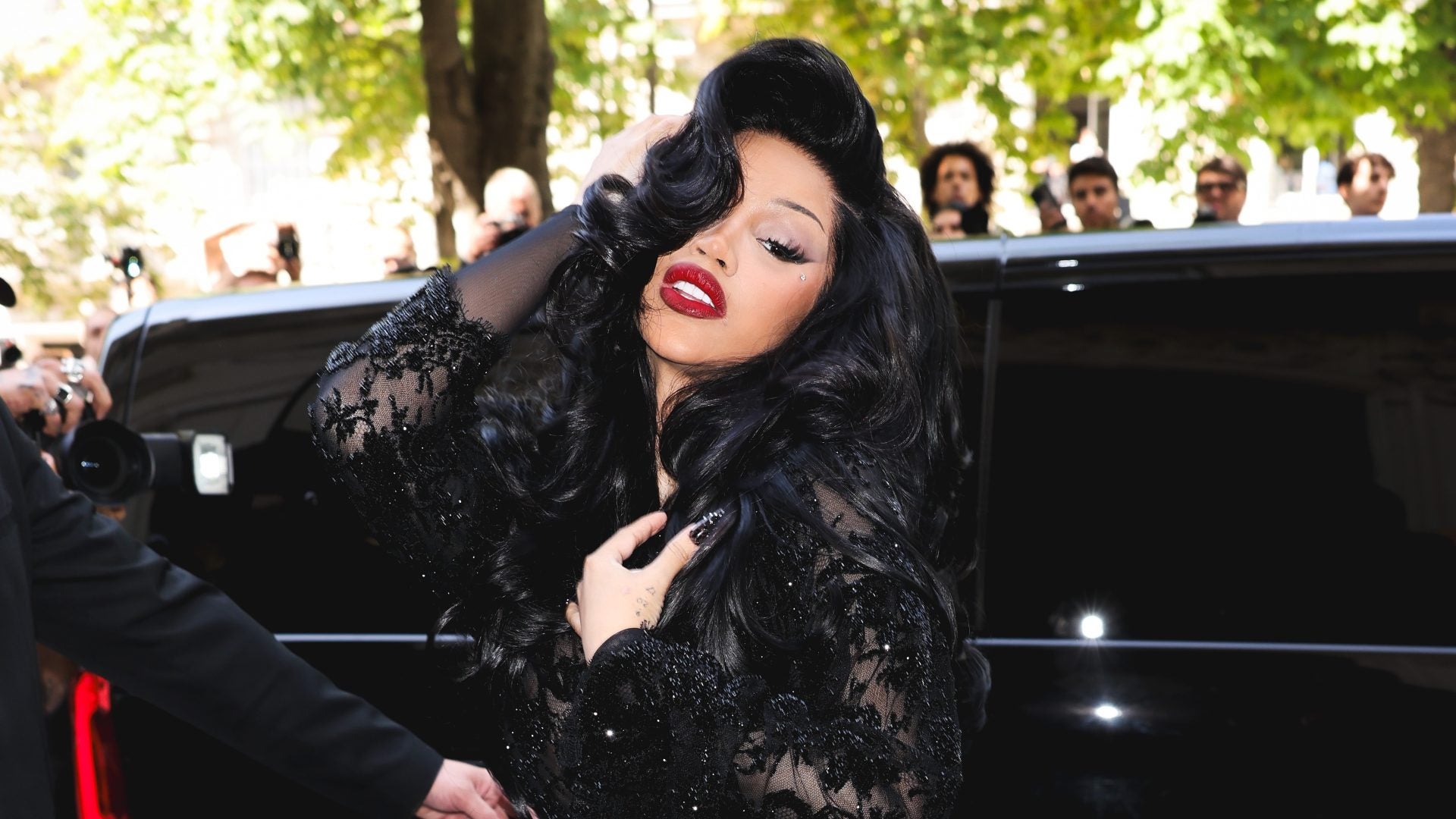 Cardi B has become synonymous with the Couture week front row thanks to her knockout beauty looks. Last year, she went from a mob wives bob at Alexander McQueen to eye-shading bangs at Mugler. This time, at Balenciaga’s FW25-26 show, she opted for something more romantic: ultra-dark bombshell curls.