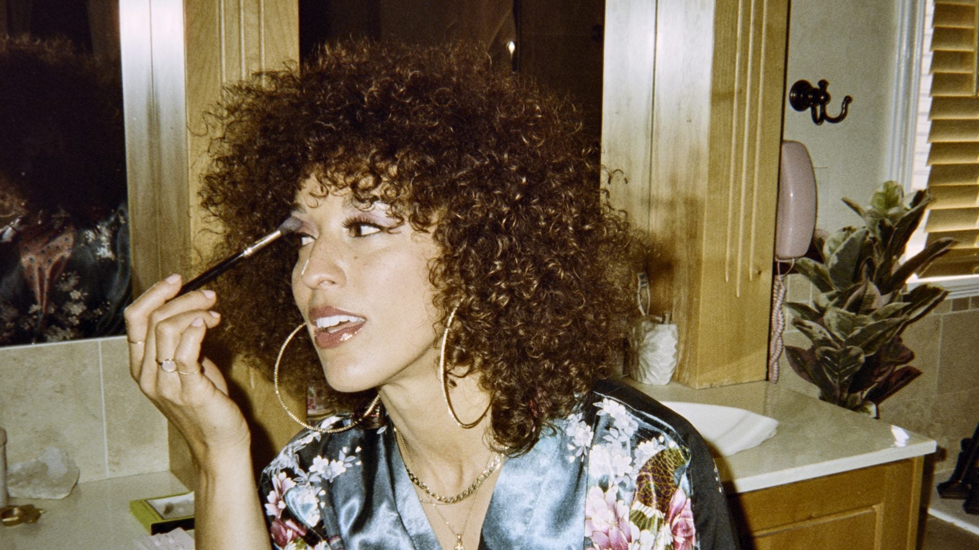 Right now, she’s all about soft structure—glossy lids, a brushed-up brow, minimal mascara, and healthy, hydrated skin. “It’s glow without the weight,” she says. “I’m learning to love my skin in every stage.” Her best advice for beginners? “Start with one focus area. A bold lip, a cream blush, or shimmer on the lids. Makeup should enhance, not overwhelm. And if you mess up? Tomorrow is a new face, babe.”