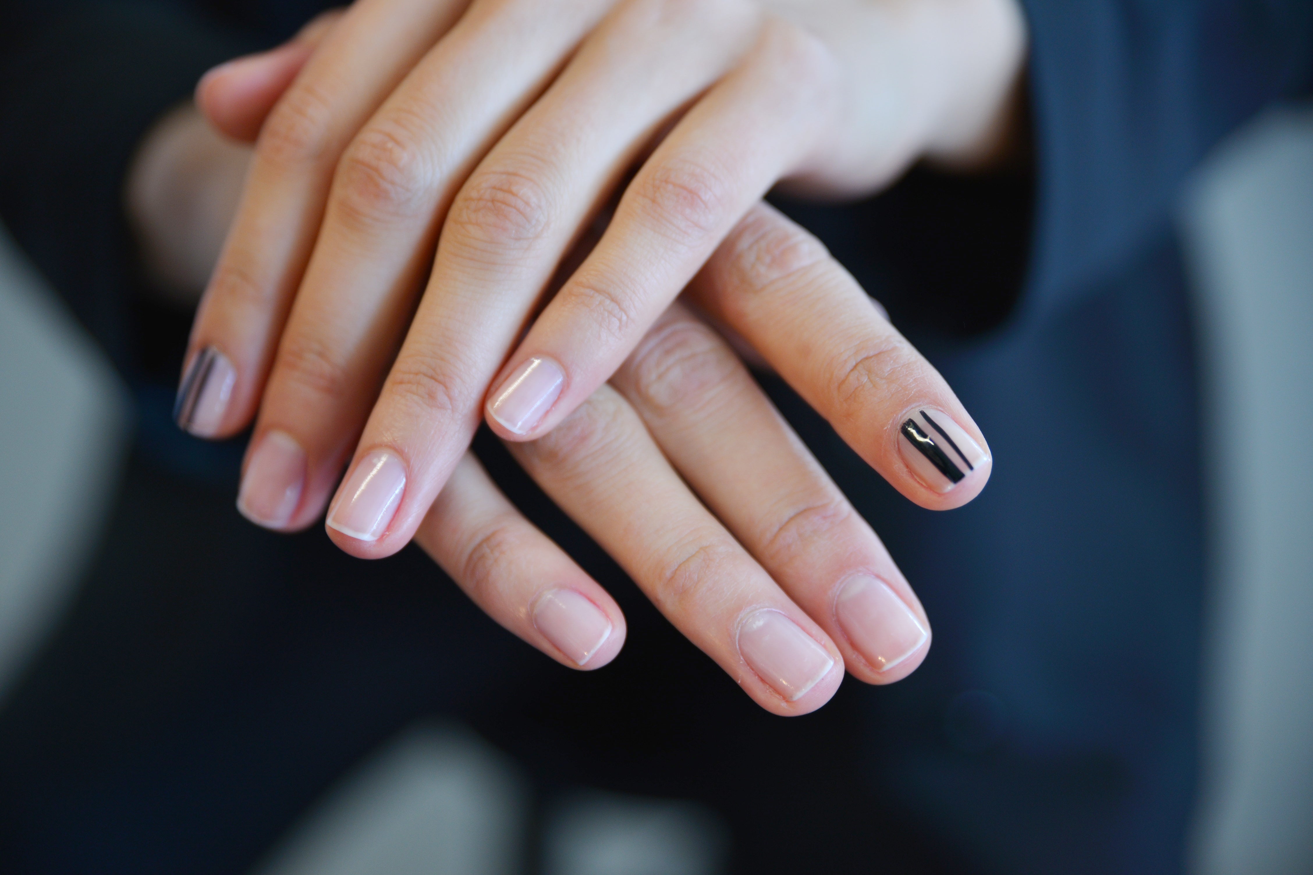 Manicurist Jin Soon Choi lacquered each girl up with bold stripes on a single nail, and a clear coat on the rest of the fingers.
