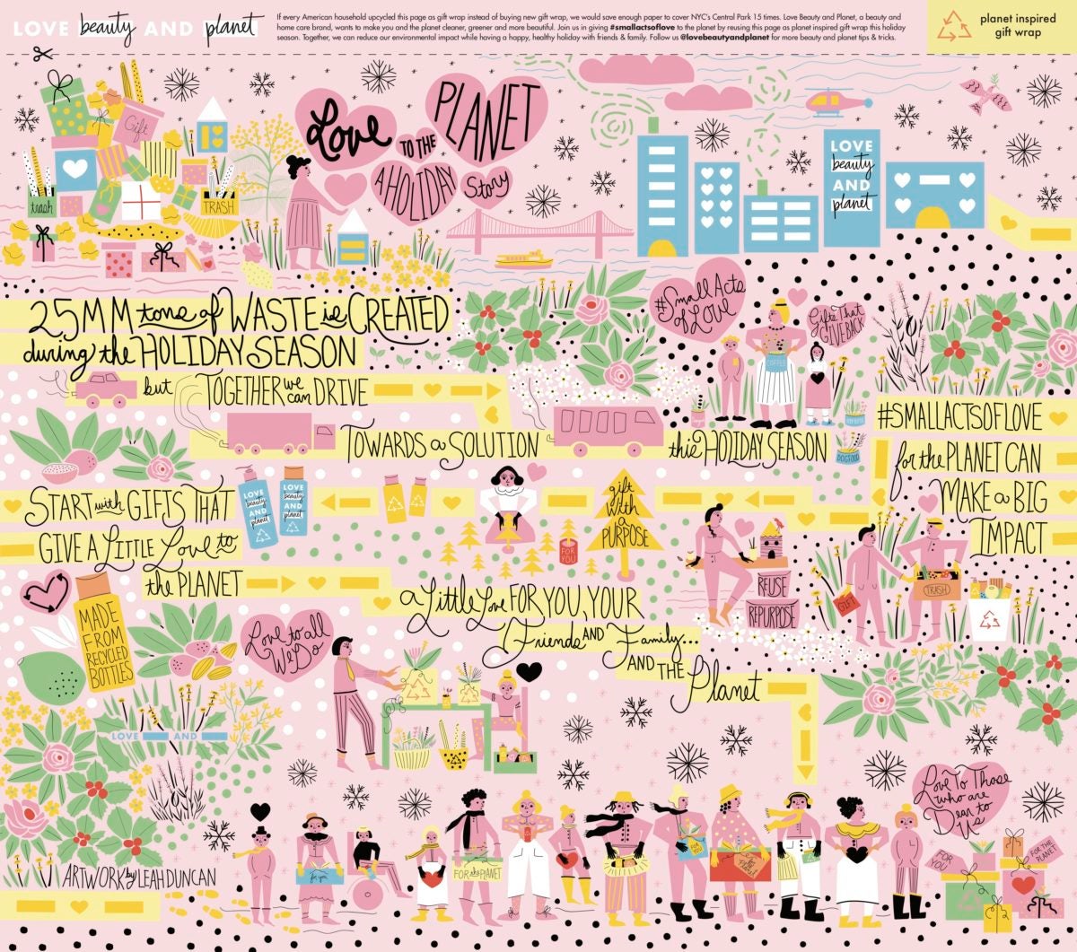 Estimates show that packaging, paper, bows, and unused gifts account for 25 million pounds of waste sent to landfills, but this holiday season, Love Beauty and Planet is on a mission to inspire #smallactsoflove that will make the world a little cleaner, greener, and beautiful.