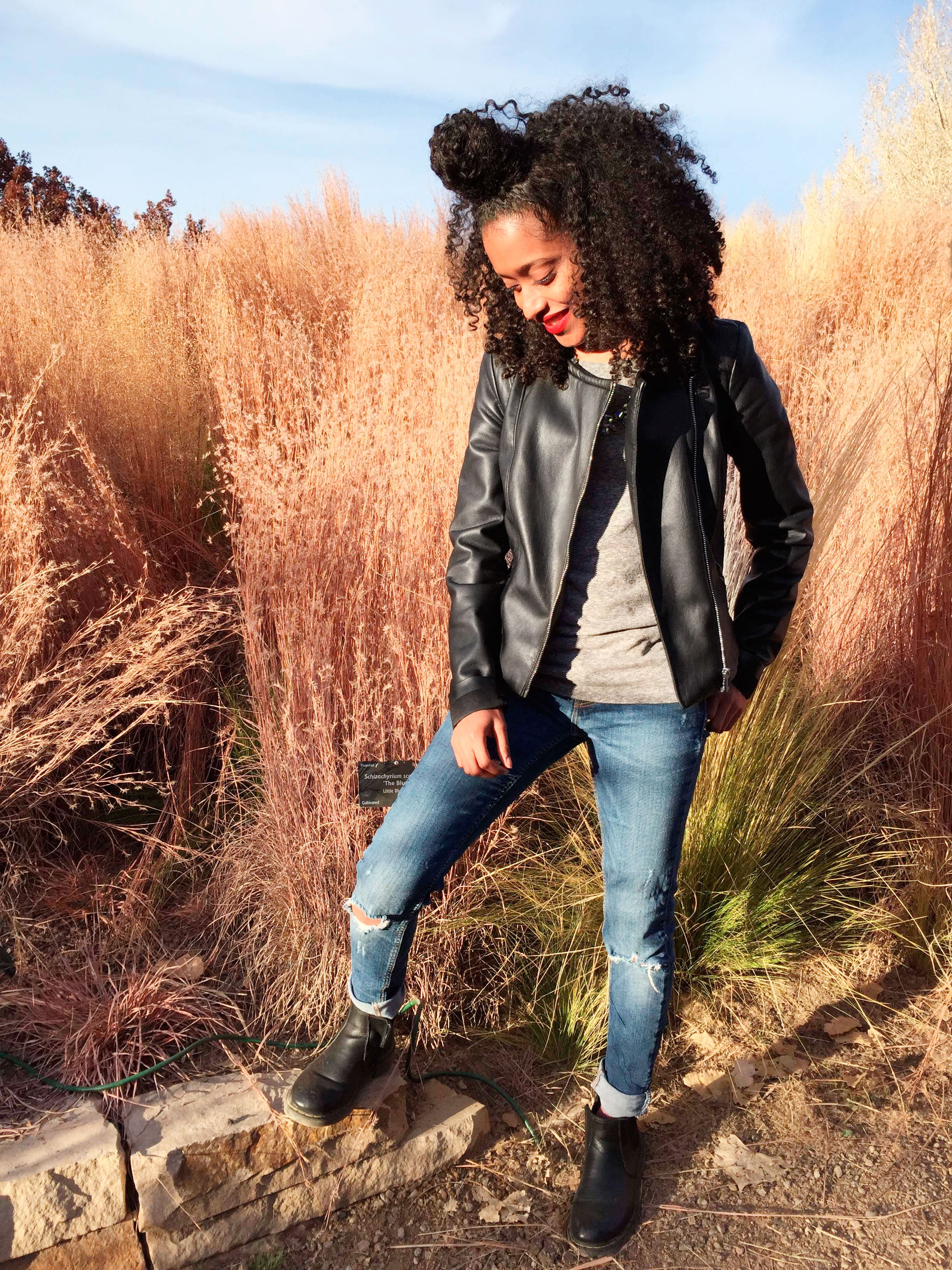 “Colder temps can leave hair feeling dry and brittle, so keeping my hair moisturized with deep conditioners, leave-ins and styling products is a must,” says Chaney. She prefers using items from the Beautiful Curls line by Alaffia.