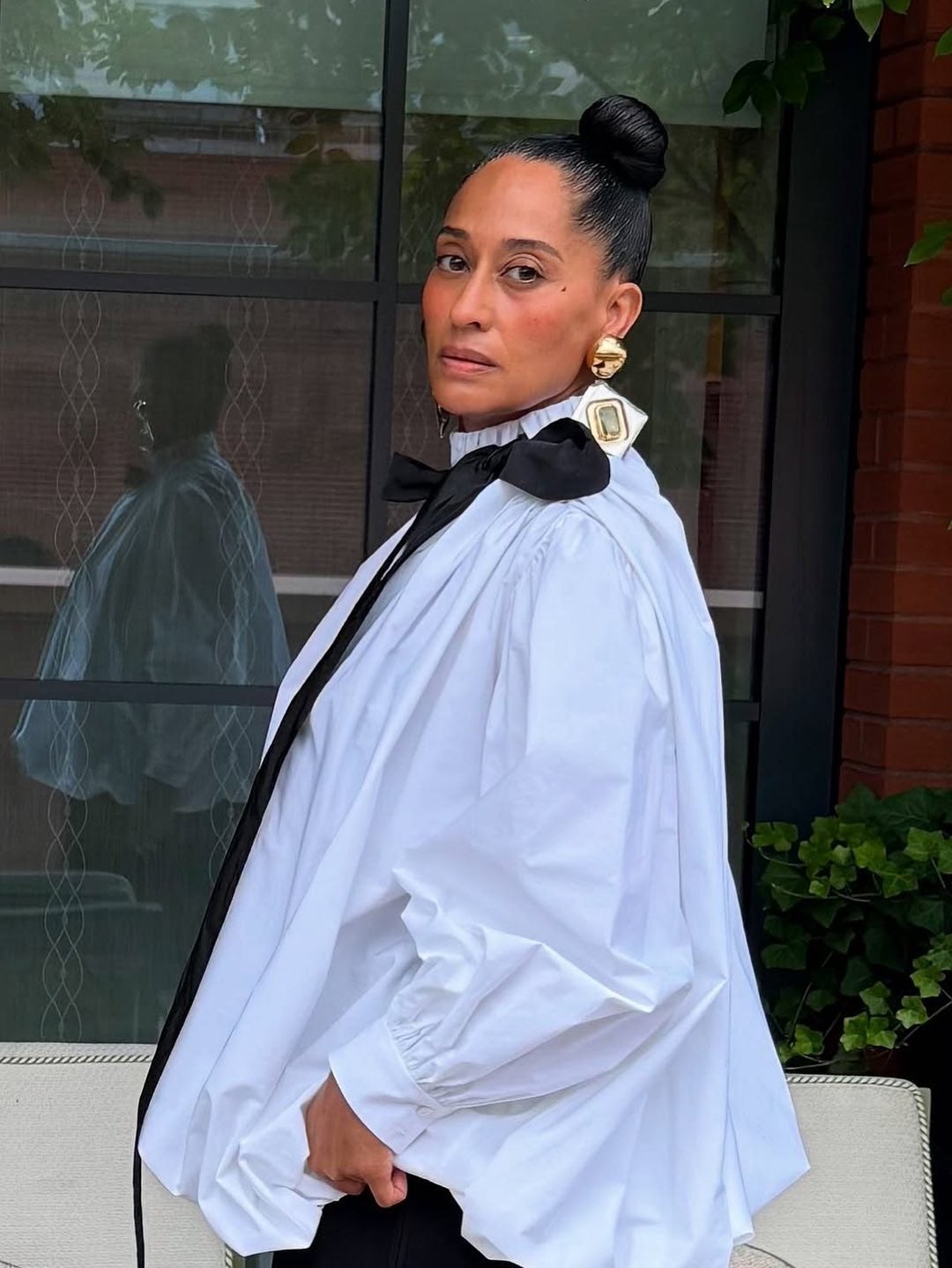 With their hair slicked into updos, Nicole Ari Parker and Tracee Ellis Ross tuned in on their makeup looks. Parker, who was seen in a sultry, eye-elongating black liner and red lip stain, paired her beauty look with a classic oval manicure. Ross entered her new show, Solo Traveling, era in the same manicure as Parker and opted for a pool-drenched beauty look. And when it came to her Ross’s face? For her link-up with friends, Solange completely agreed.