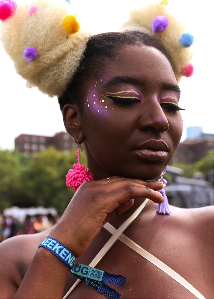 Beauty may be one of the only industries that is gender neutral—there is no male or female section in Sephora’s makeup section and there is no label that states which foundation or lip kit is made strictly for men or women. Even when analyzing the history of makeup, it has been worn by all genders for centuries—such as powdered wigs and rouge worn in Europe during the 18th century. AFROPUNK is one of the spaces that expels gender norms and encourages attendees to embrace their Afrocentric beauty.