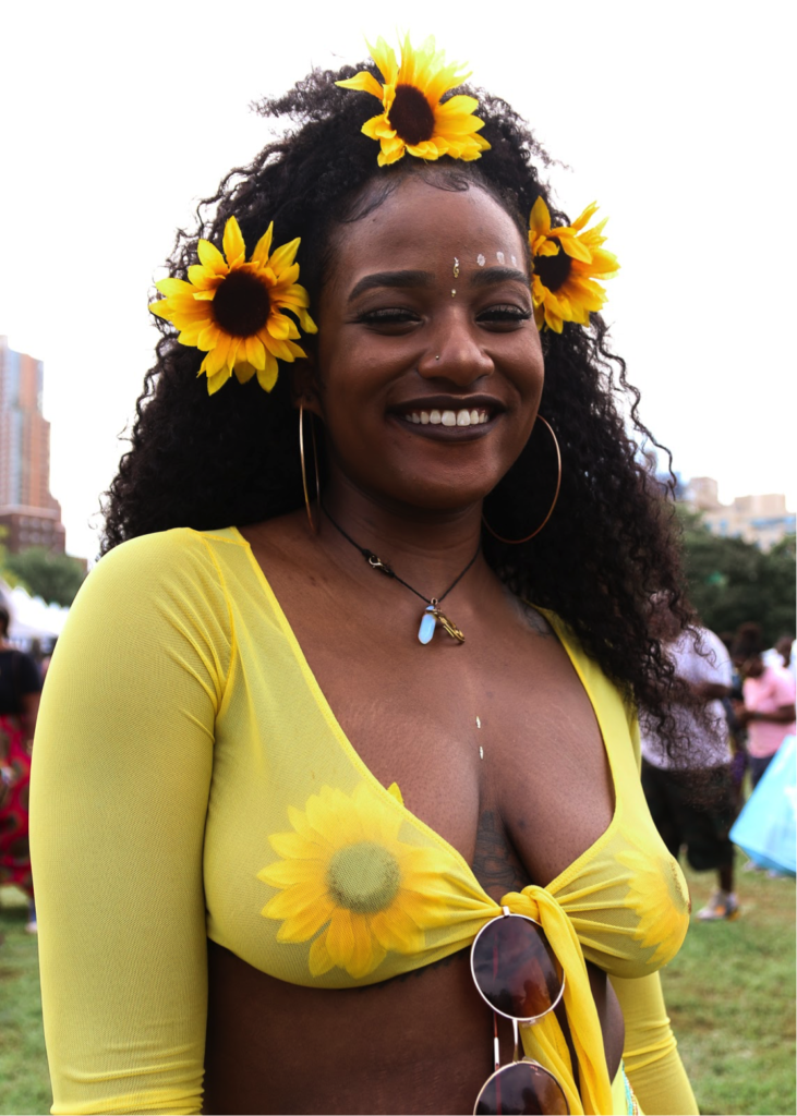 “I put sunflowers in my hair because they’re my favorite flower, and yellow on melanated skin looks amazing.”