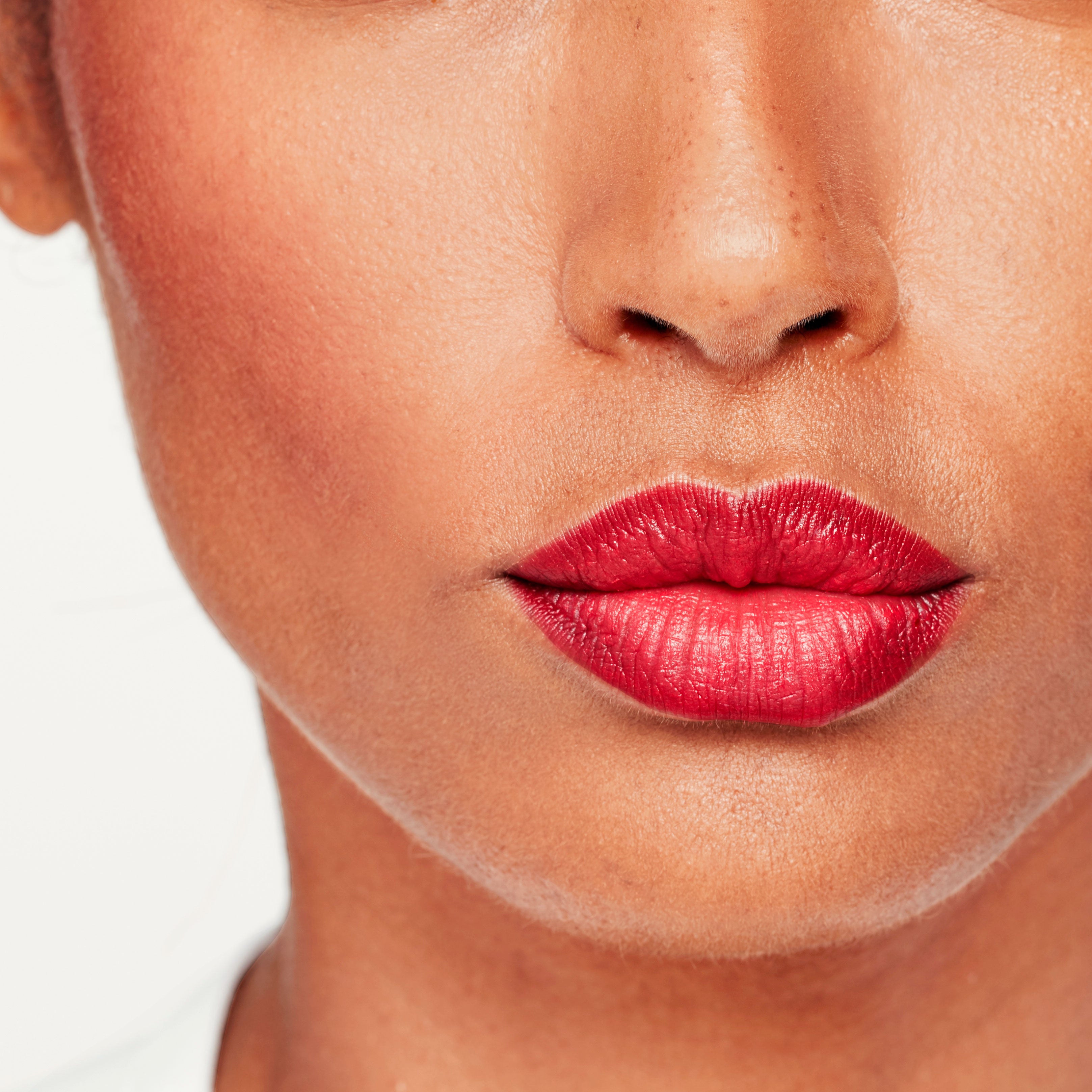 To make lips look fuller, first determine the shape by outlining with a shade that’s darker than the primary color you will be using. Then apply the lipstick to the center only. We like Benefit They’re Real! Double the Lip in Flame Game ($29, sephora.com).