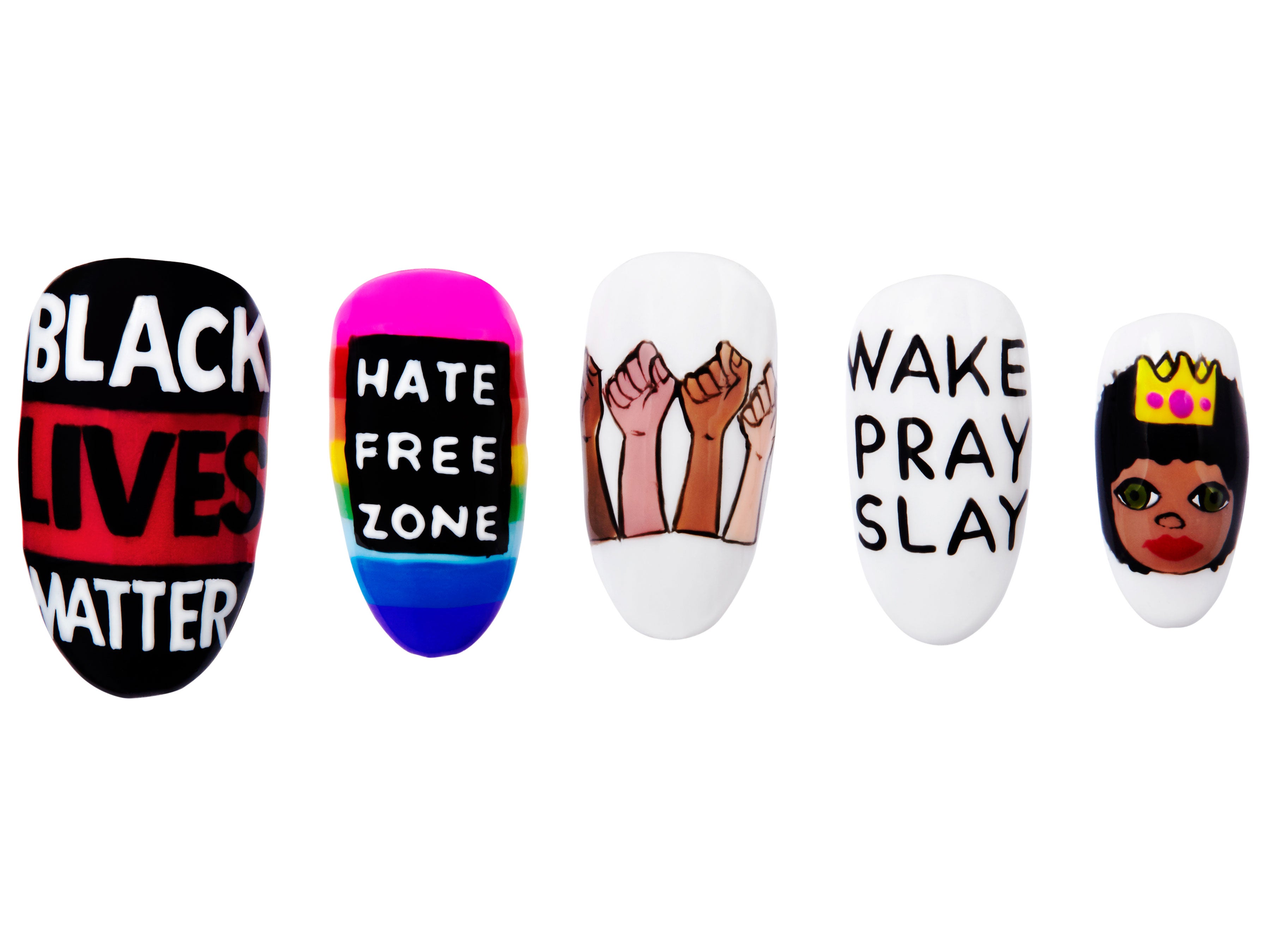 It looks as if negative space is here to stay “because there are so many ways to wear it,” says nail artist Fleury Rose (@fleuryrosenails), who produced these three designs.