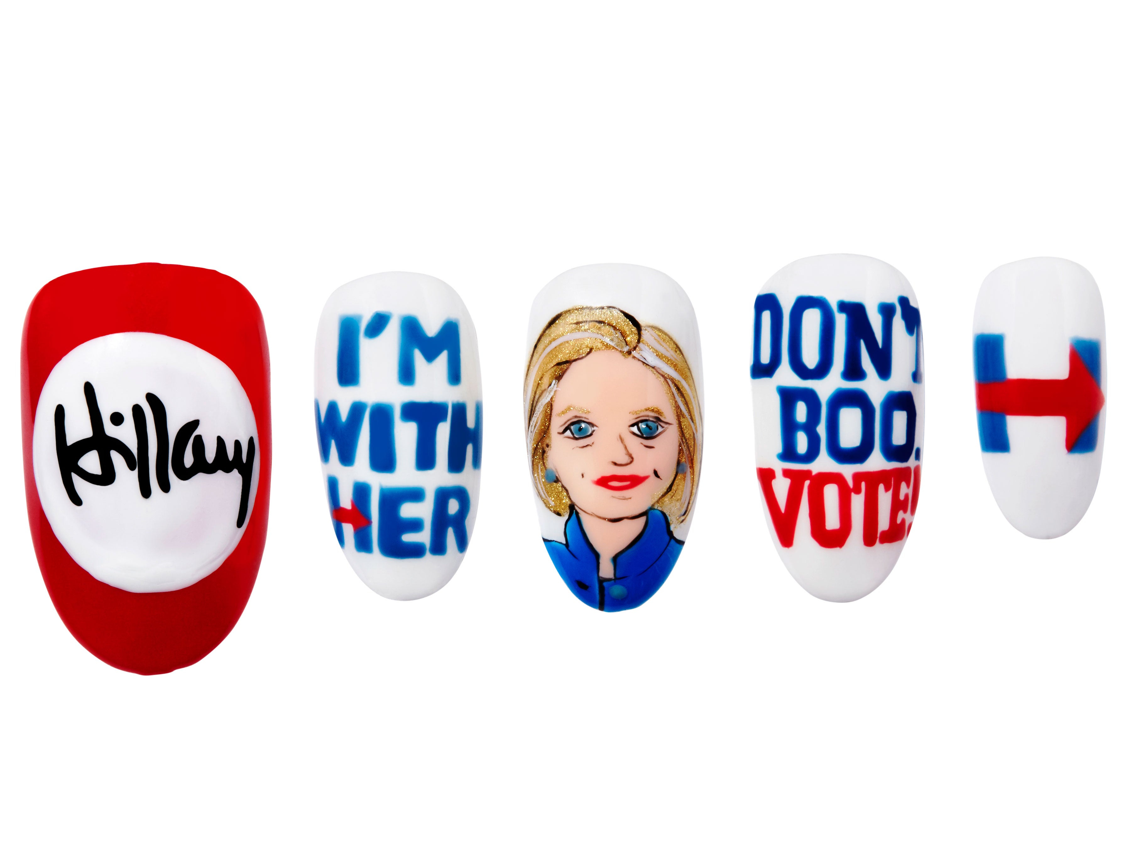 Nail artist Mei Kawajiri (@ciaomanhattan2012) crafts a manicure that will definitely get you excited for the upcoming election. Why not hit the voting booth with a set of killer nails?!