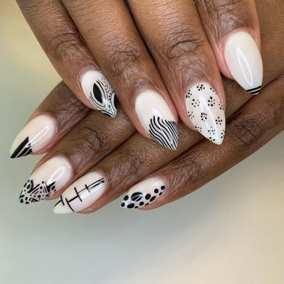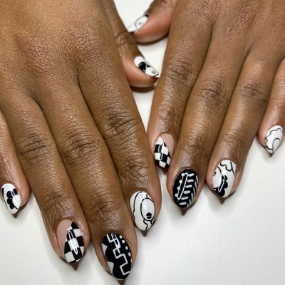 Break up the monotony of the news-work-family-news cycle and take some time to do a little pampering. These gorgeous black-and-white nail designs use a different color combo for spring than we typically see, and they’re fun and creative. They’re not easy to execute. But between shelter-in-place mandates, self-quarantines and work-from-home orders, many of us have nothing but time to try them.