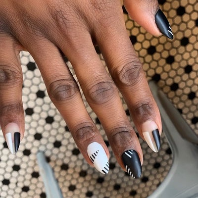 Check out some of our favorite takes on the classic color combo for nails in the gallery below.