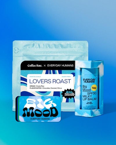 We love a good collaboration, especially when it’s limited-edition and delicious! Everyday Humans recently partnered with CoffeeBae to create the Coffee Lover Set, an affordable package that includes mini-sized Lovers Roast coffee beans from Bae World to fuel your day, an oat-milk lip balm to fuel your skincare, and Big Mood prompt cards for introspection.