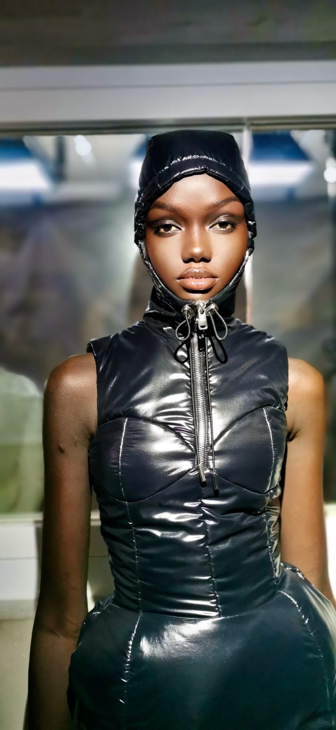 Coperni is known for using fashion technology as a spectacle. At their Spring 2023 show, the designers used Fabrican, a patented spray-on wearable textile dispensed from a can, onto a supermodel like body makeup. Then, the following season, had a robot snatch off the blazer of a tired-eyed model. Now, this season, makeup artist Pat McGrath staged internet subculture makeup to compliment the show’s LAN party set, blending the ‘90s with virtual-styled glam.