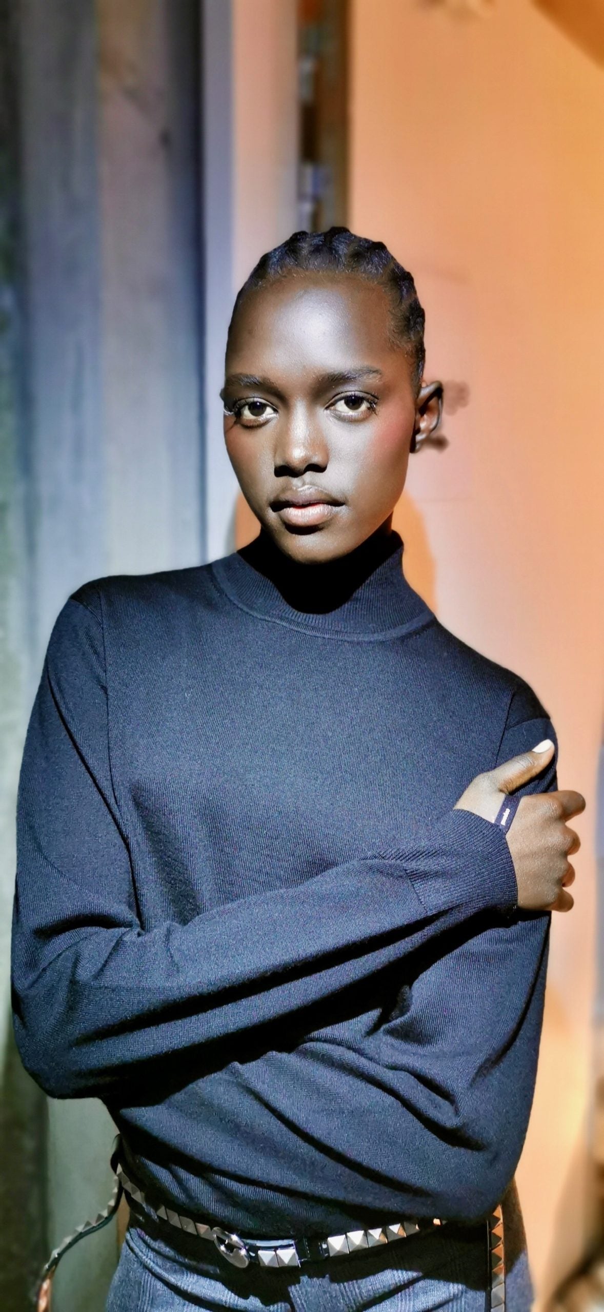 A product used at Margiela couture last year, her Divine Skin: Rose 001™ The Essence was the base for Schiaparelli’s signature “aliengelic” skin, before being layered with the Skin Fetish: Sublime Perfection Foundation. Then, the pearlized iridescent Skin Fetish: Highlighter + Balm Duo was applied to high points, like the cupid’s bow and nose bridge, with eyeliner smudged across the lids to create a smoke screen.