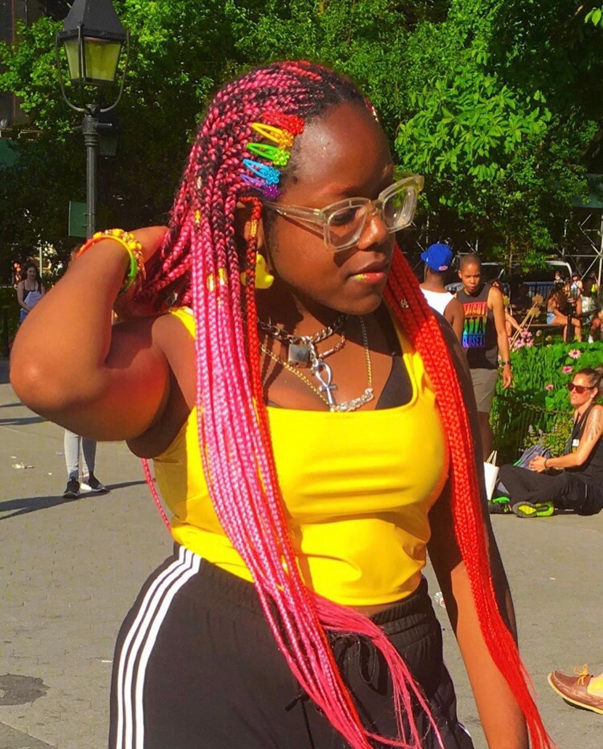 While some parade-goers adorned their faces in flamboyant makeup, others embellished their tendrils with technicolor. Between the whimsical hues and extravagant hairdos, there was a ton of beauty inspiration. If there’s anything to be said about Pride month’s closing event, it’s that it was fun-filled and eccentric.