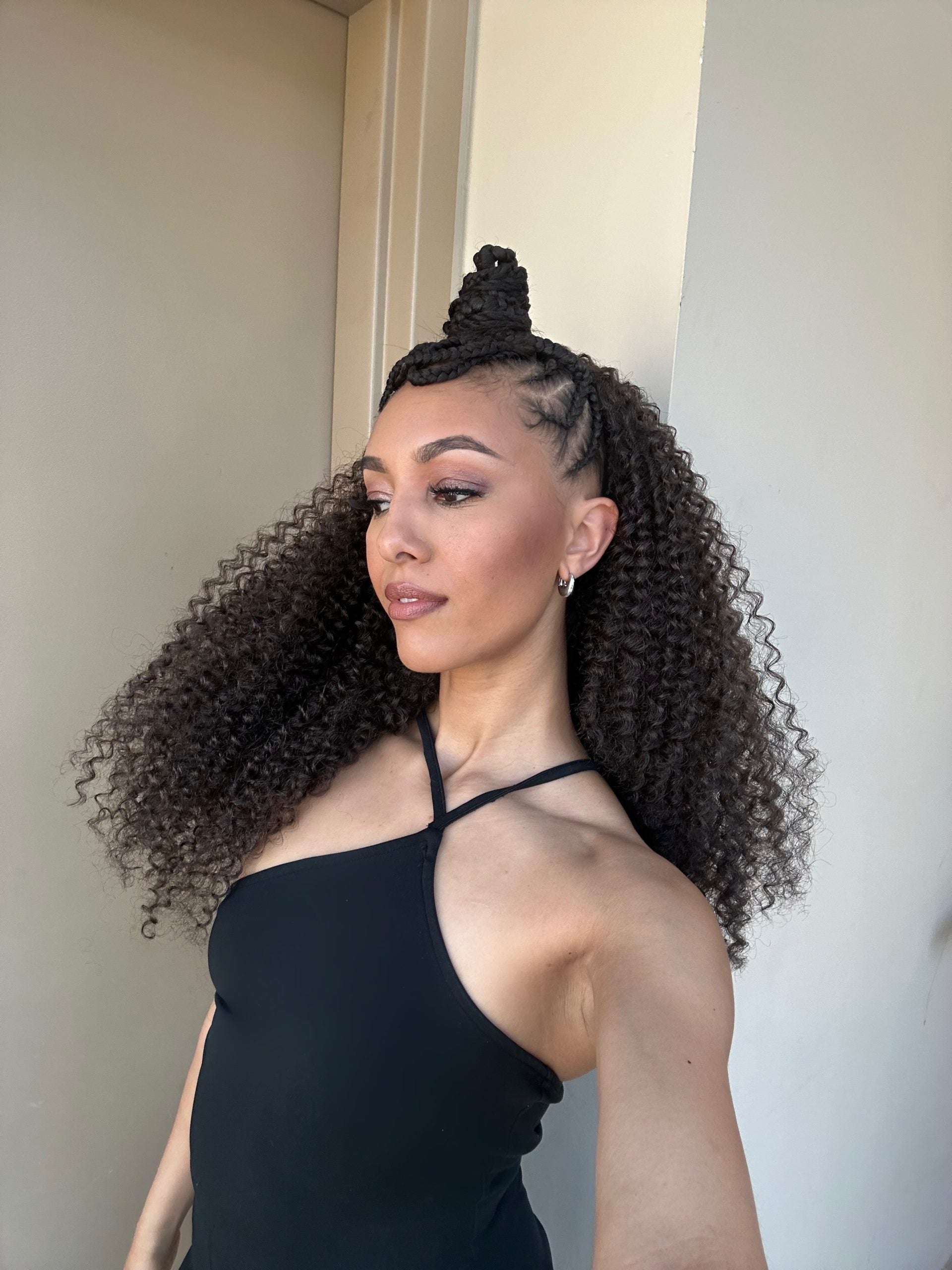 I thought testing out the oil on my freshly braided hair, by Kathy Clarke Louis at the Hair By Susy salon, ahead of working the Black Hair Reimagined Hair Show red carpet, would be the perfect time. I brought the oil with me to add sheen and moisture to my half curly, half cornrowed style.