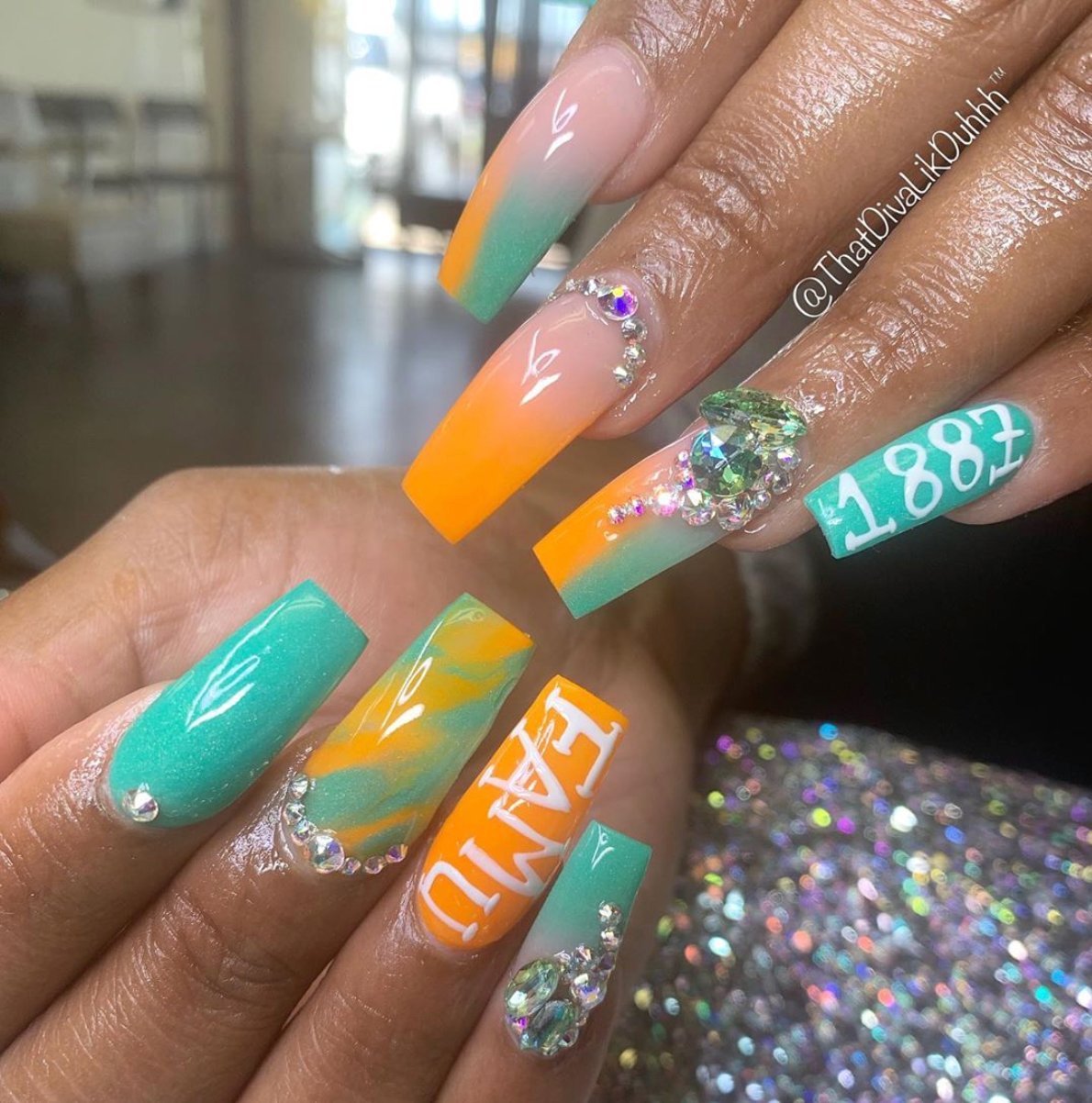 And whether you’re attending homecoming or cheering from afar, these 15 unique nail designs can translate to any school with any colors. They’re part of the large roster of HBCUs, and a great way to rep these alma maters.