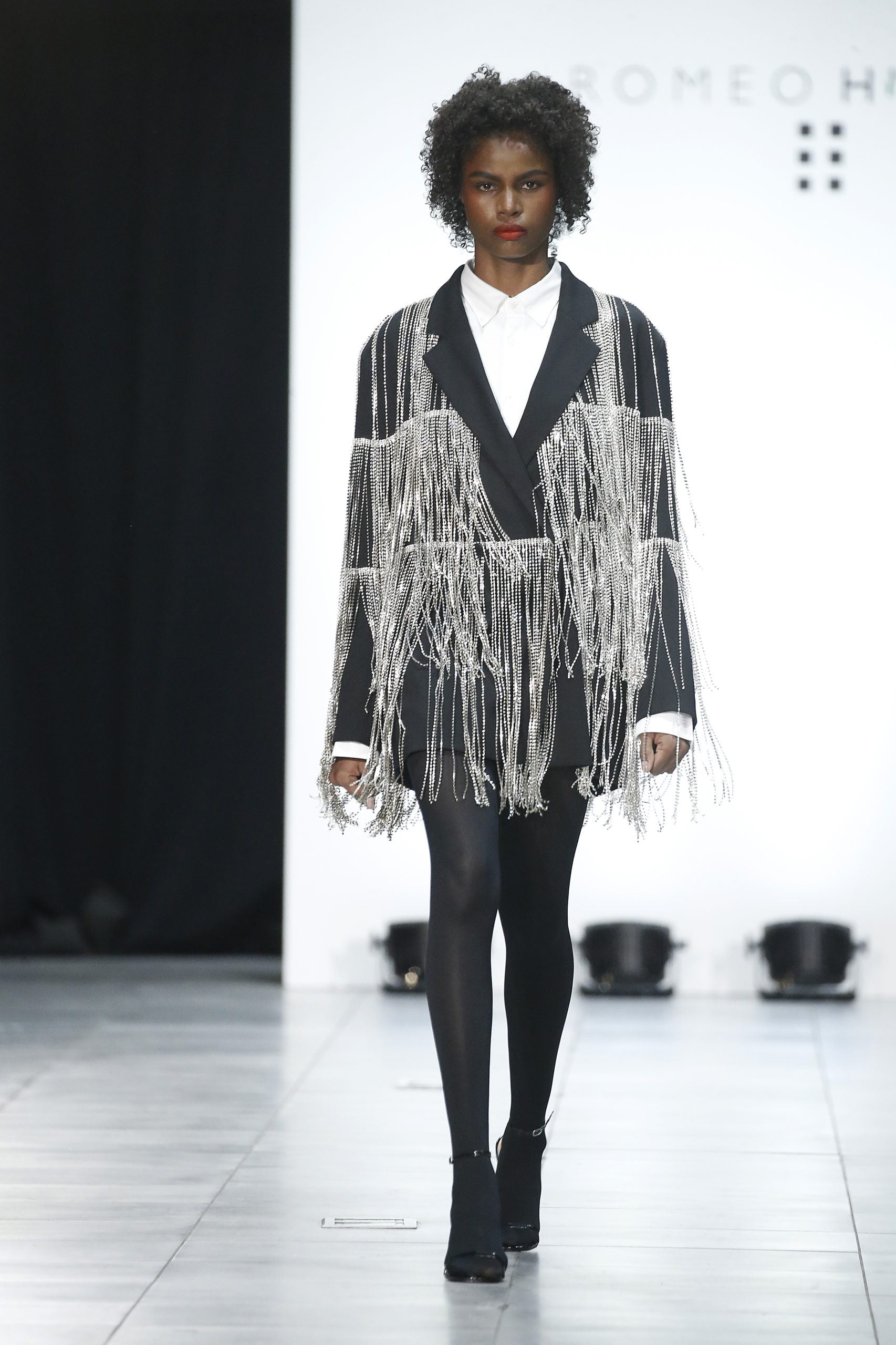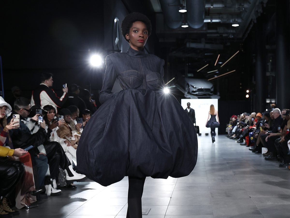 Front row stars like rappers Fabolous and Dave East attended the Romeo Hunte FW24 show to celebrate his 10th anniversary, paying homage to his Brooklyn roots. Nestled inside of Manhattan’s Mercedes-Benz dealership, Hunte’s collection boasted modern tailoring and elevated streetwear. Think: puffy corset dresses and long-trained corset gowns