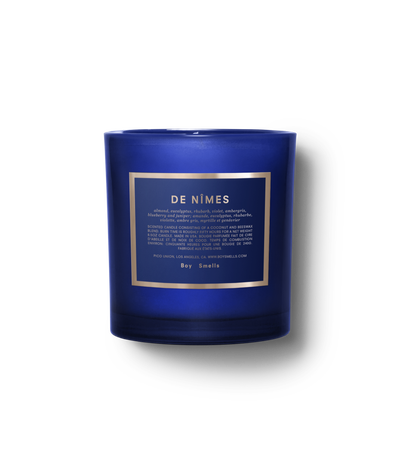 Finally, the bundle includes the DE NÎMES candle that features the aromatic scents of almond, eucalyptus, rhubarb, violet, ambergris, blueberry, and juniper.