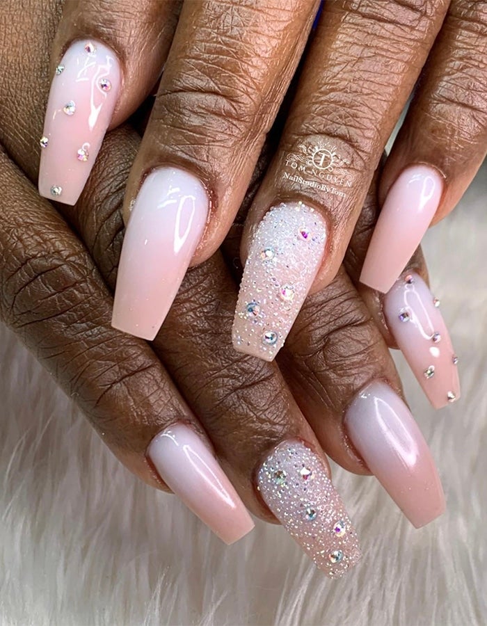 This elegant nude ombre set is accented with Swarovski crystals for a lil’ extra holiday glam by