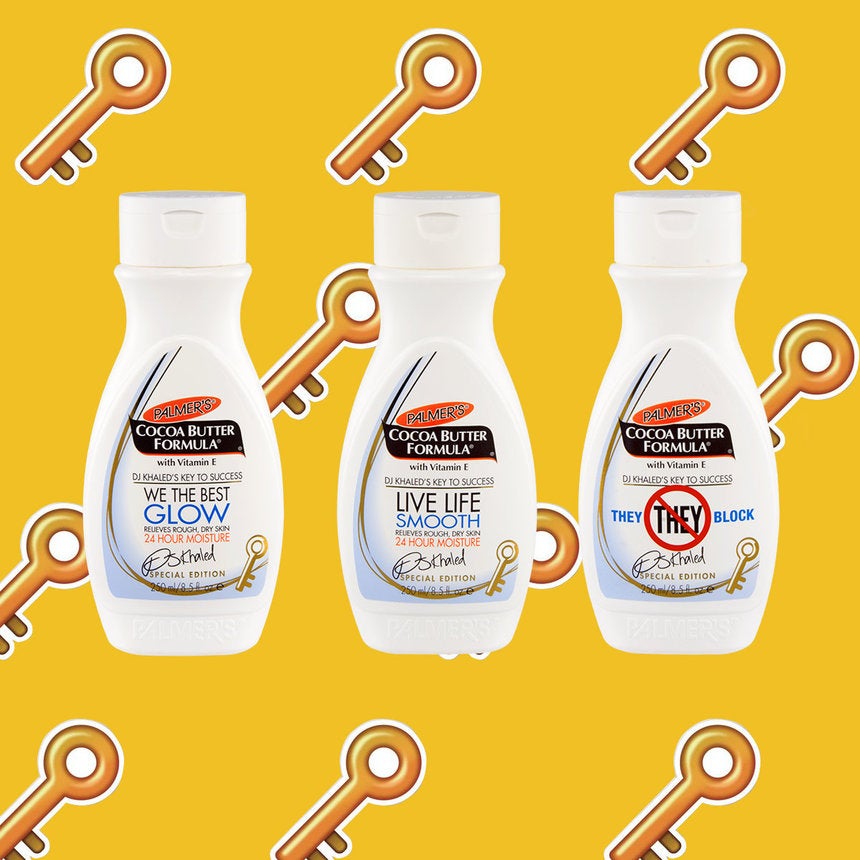 Yesterday (December 13) marked the monstrous launch of a beauty collaboration we definitely didn’t see coming: a capsule collection of Palmer’s Cocoa Butter Lotions (above) featuring three of Khaled’s most beloved (and repeated) catchphrases: “‘They’ Block” “We The Best Glow” and “Live Life Smooth.” Truly: we’re impressed.