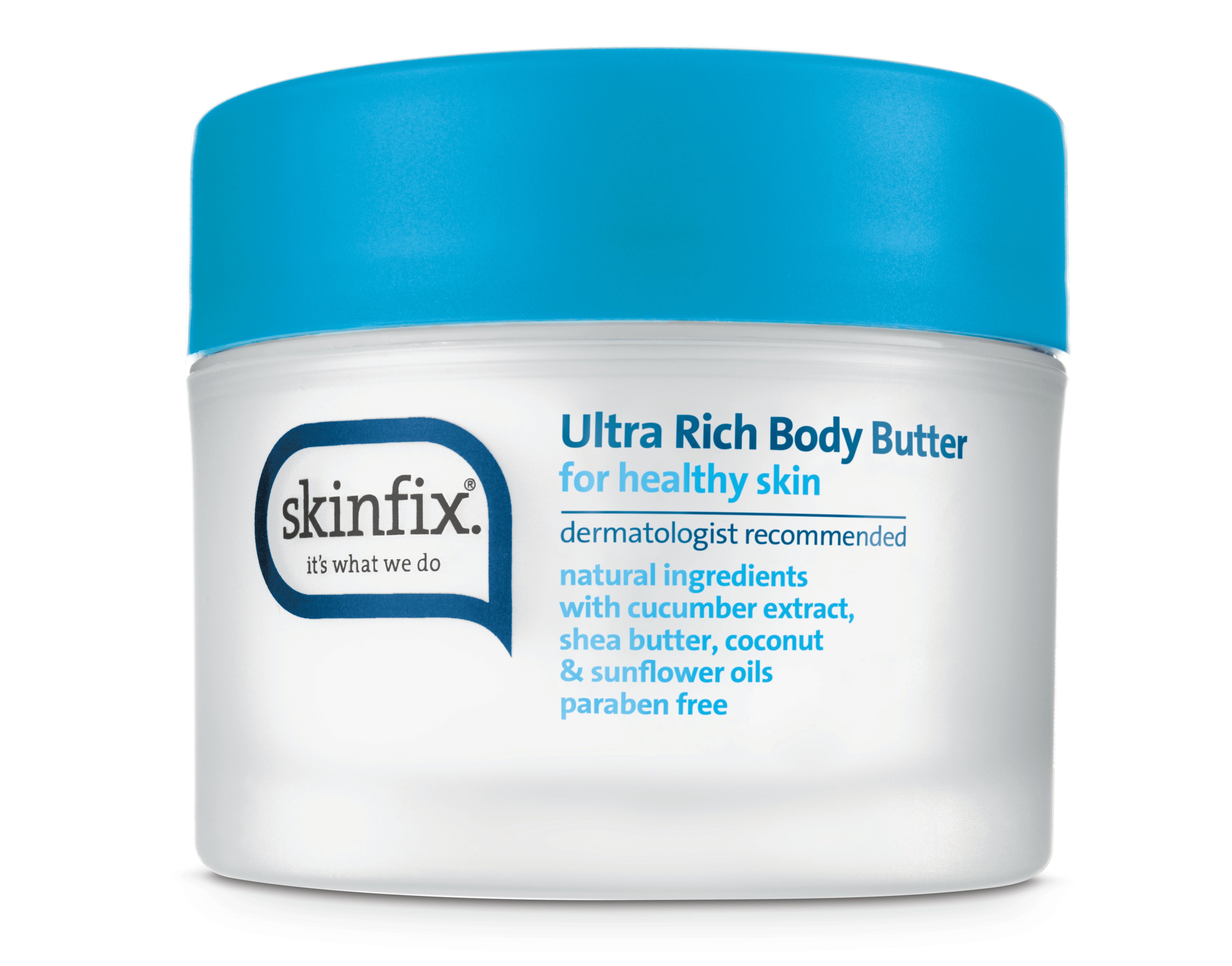 Follow up with the SkinFix Ultra Rich Body Butter that is chock full of ingredients, like shea butter and coconut oil- the ultimate thirsty skin quencher.