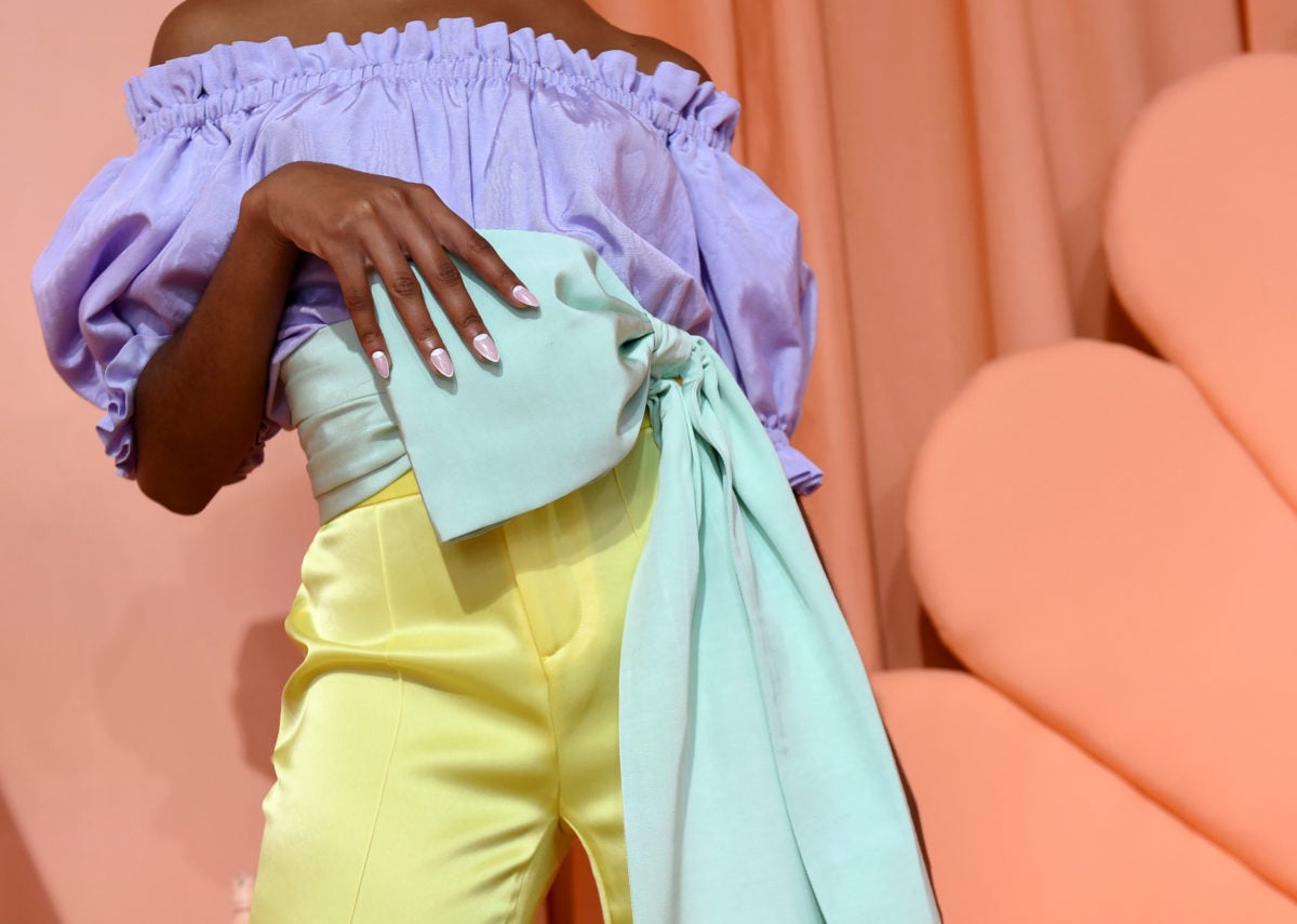 “We created the half-moon at the base of the nail and then to update it, we outlined the rest of the nail,” explained Edwards. The finished look was a replica of the nails of our dreams, and namely, the one where we’re walking down the aisle in a wedding dress.