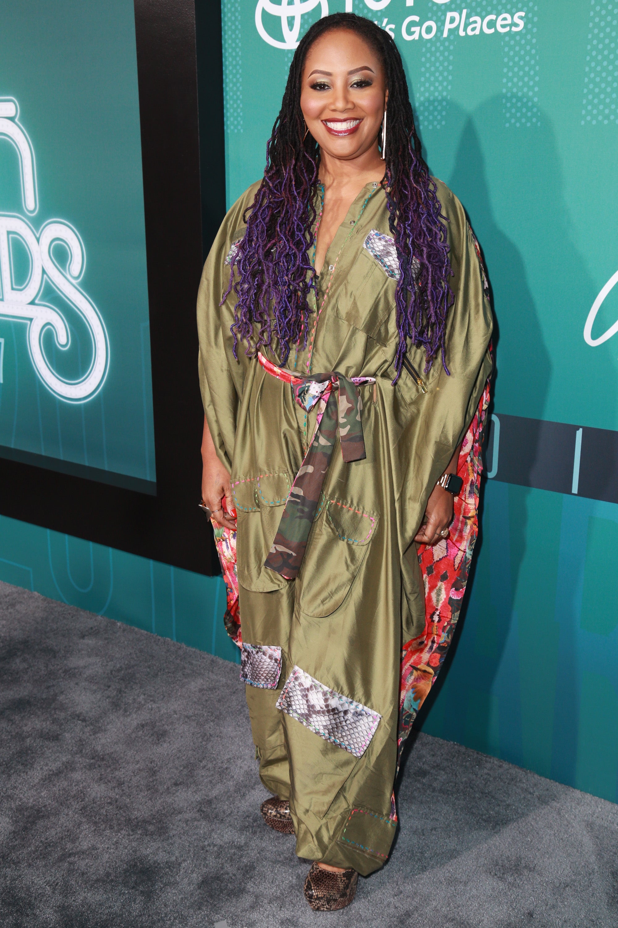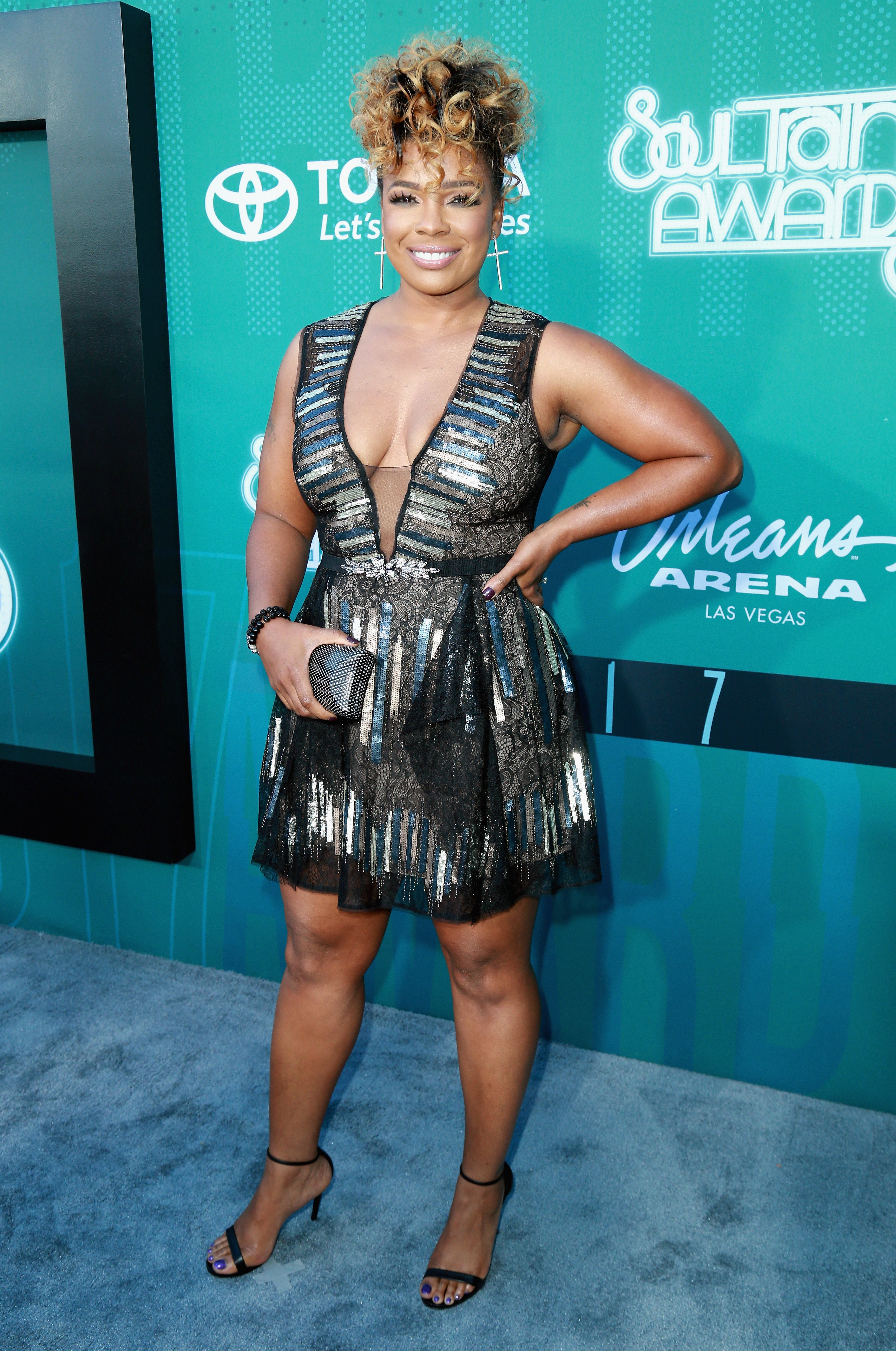 Syleena Johnson went for a metallic look on the red carpet.